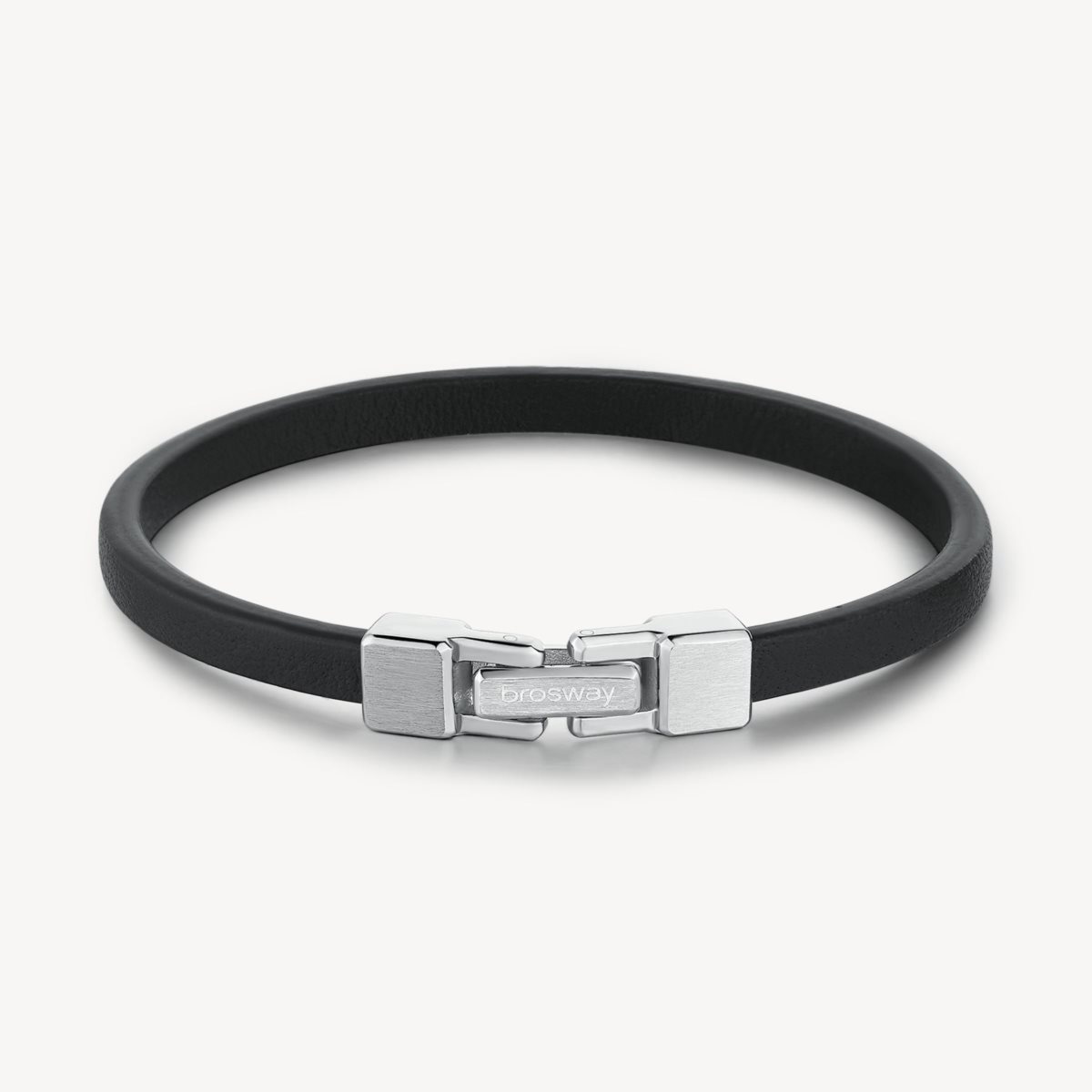 Bracciale uomo brosway, BIK135A, collezione ink, in pelle e acciaio rodiato
