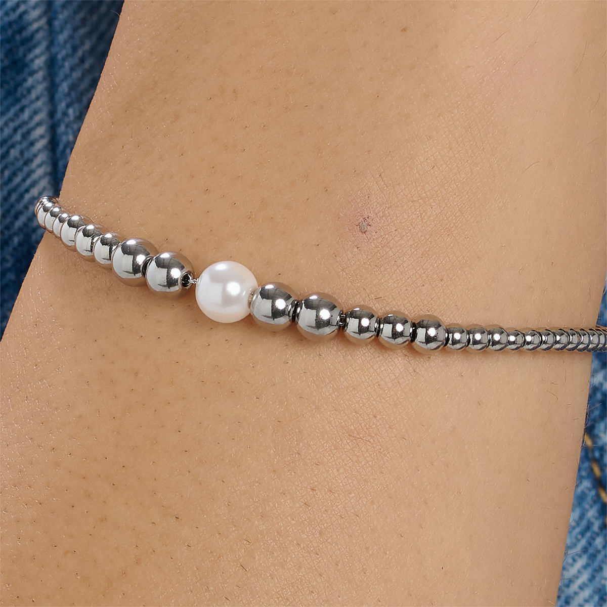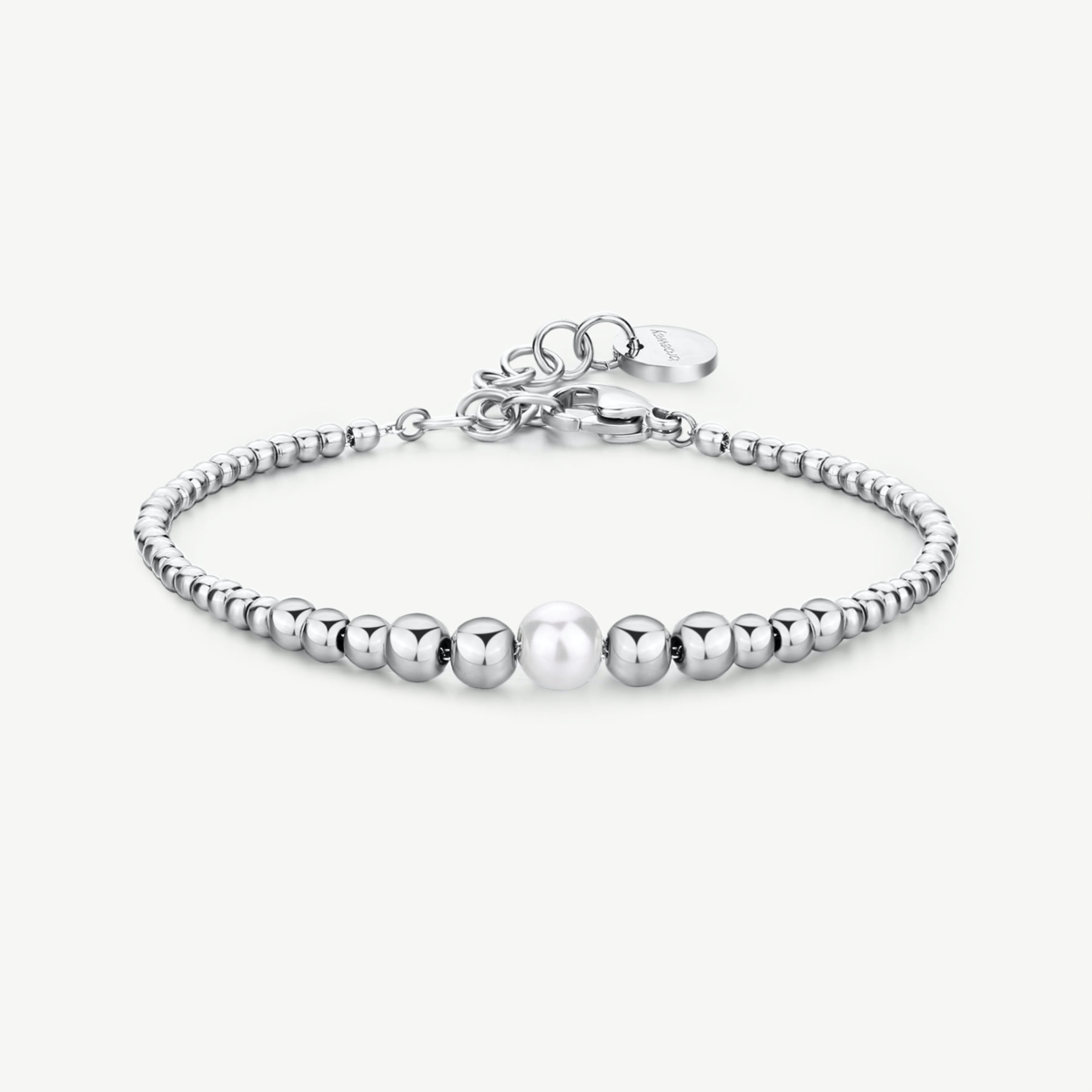 Bracciale donna brosway, BPC13, collezione perfect, a sfere in acciaio 316L e perla di conchiglia. lunghezza 20cm