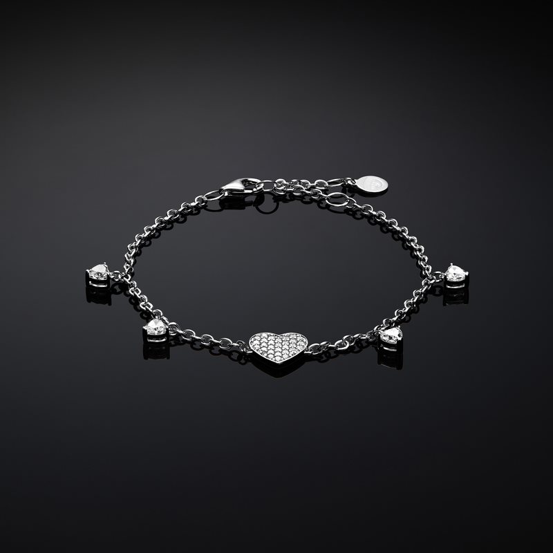 Bracciale donna chiara ferragni, J19AXD02, collezione silver love, in argento 925 con zirconi bianchi a forma di cuore e charm centrale con pavè, catena 19cm