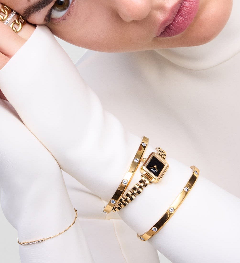 Bracciale donna daniel wellington, DW00401740, collezione classic lumine, in acciaio dorato 316L inossidabile e 8 cristalli di cubic zirconia.
