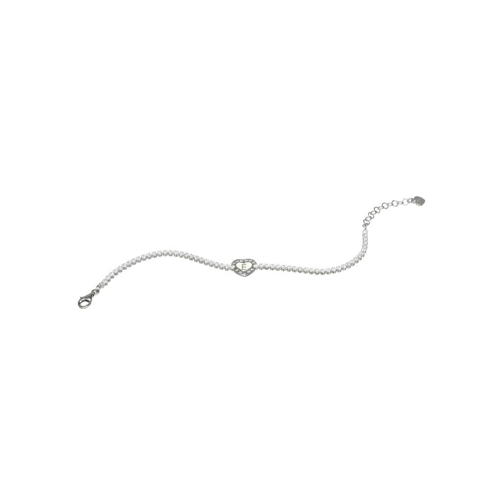 Bracciale donna dvccio, BTLAG, collezione charlotte, in argento 925 e zirconi con lettera E su cuore