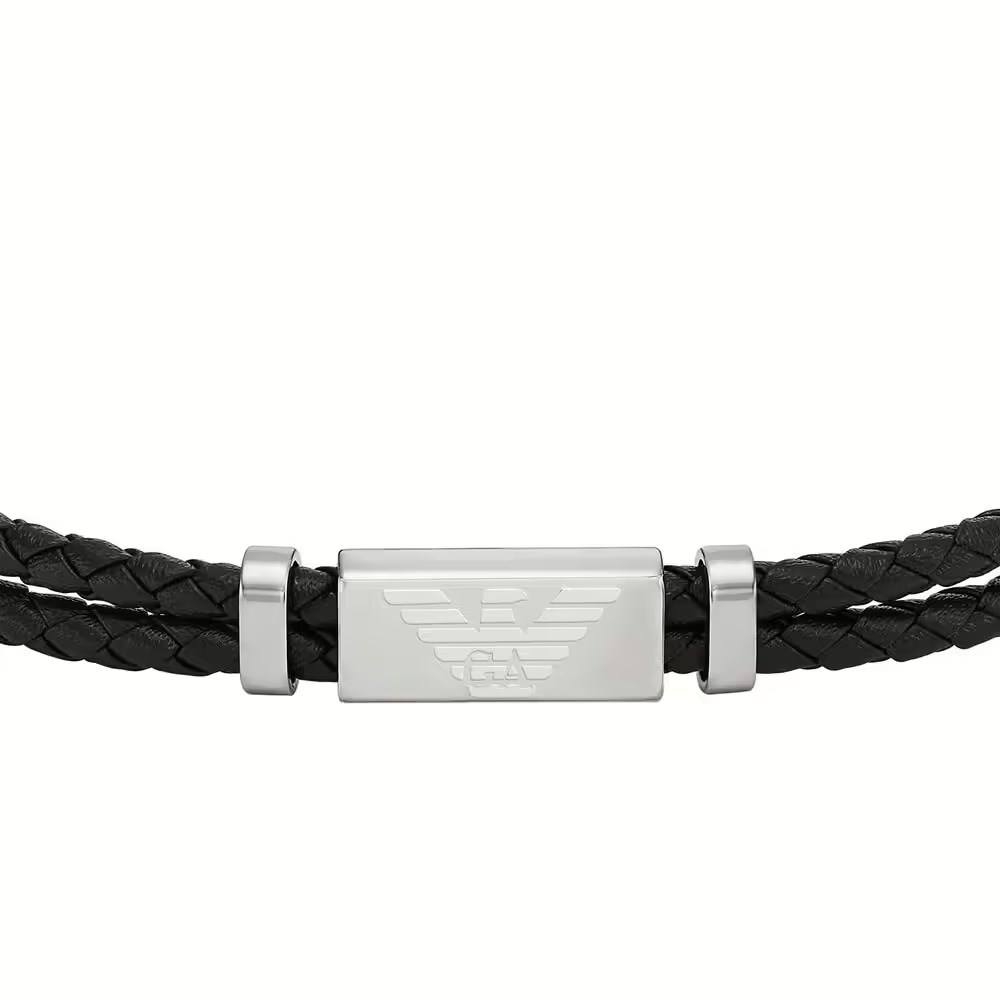 Bracciale uomo emporio armani, EGS3122040, collezione eagle logo, in acciaio e pelle nera
