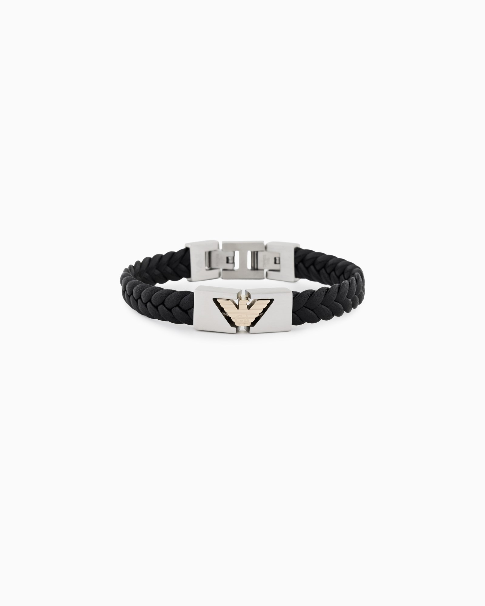 Bracciale uomo emporio armani, EGS3253040, collezione eagle logo, in acciaio e pelle nera, misura 19.5cm+1.5cm