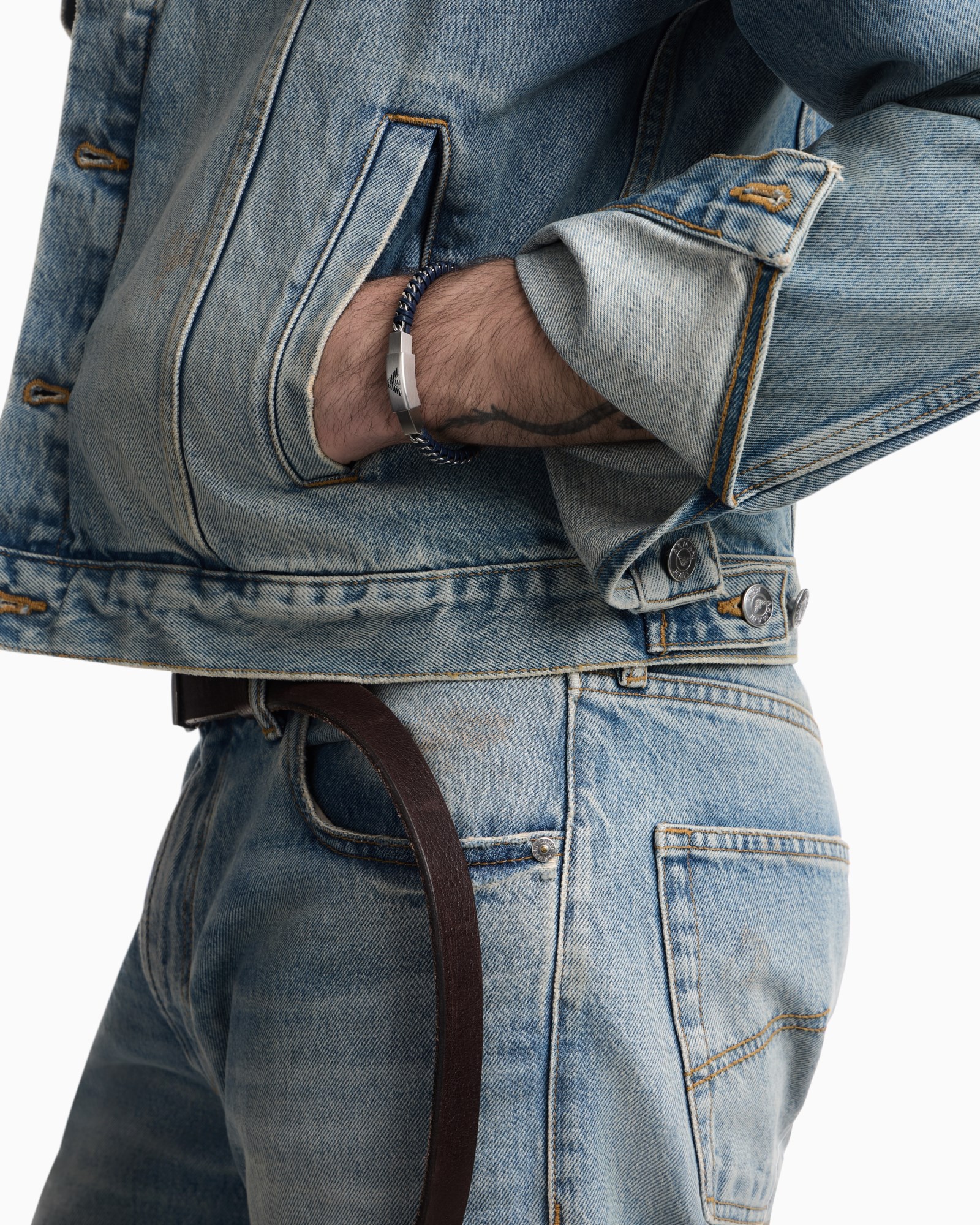 Bracciale uomo emporio armani, EGS3319040, collezione eagle logo, in acciaio e pelle blu, misura 20cm+7, 5cm