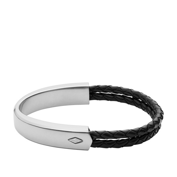 Bracciale uomo fossil, JF02760040, collezione vvintage casual, in pelle e acciaio