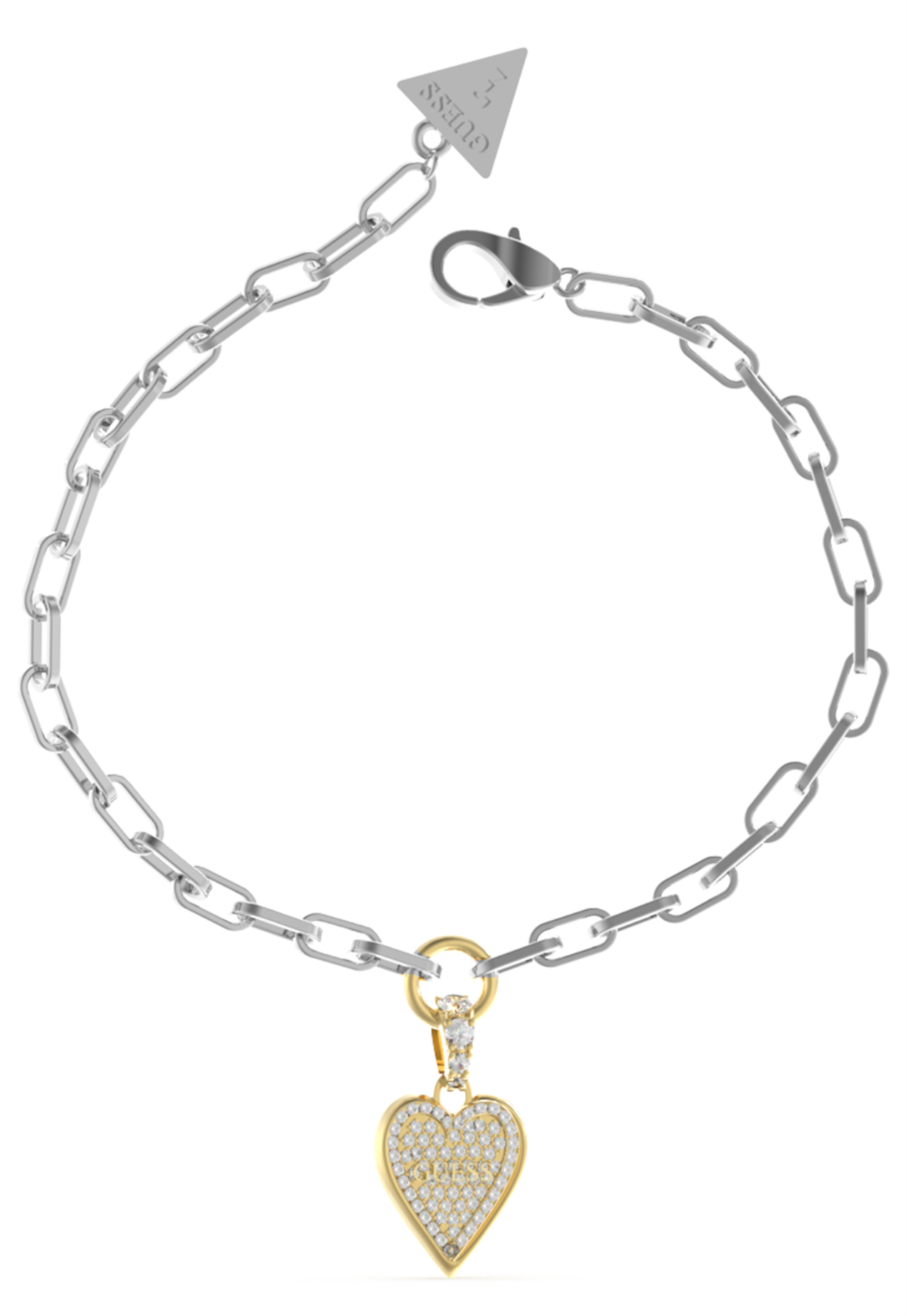 Bracciale donna guess, UBB03250YGRH, collezione love me tender, in acciaio/acciaio dorato e cristalli