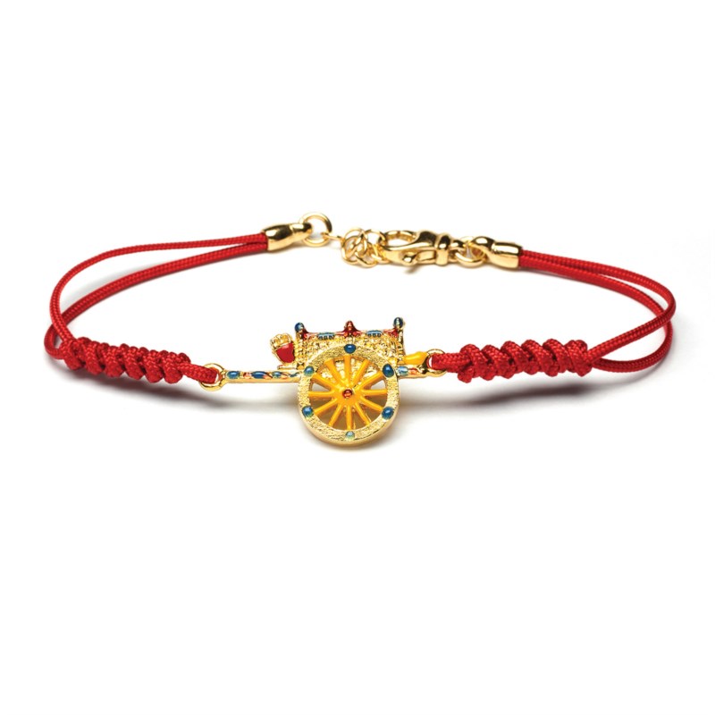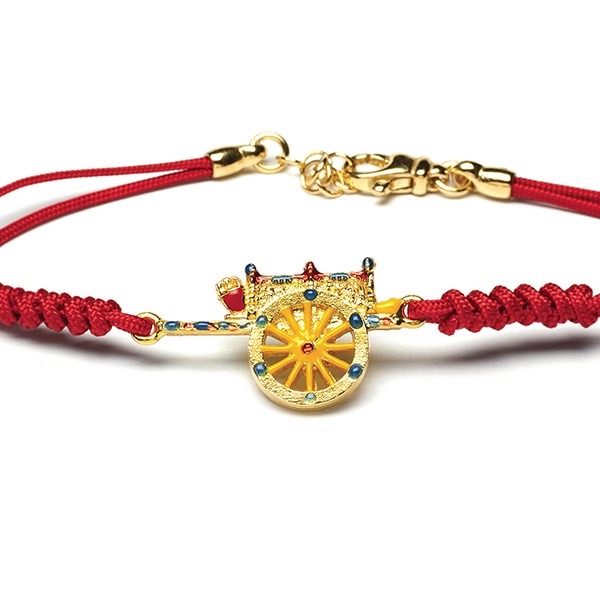 Bracciale in argento 925 placcato oro, smalti e cordino in tessuto annodato a mano anallergico con chiusura estendibile.20000063 Uno dei tradizionali simboli della cultura siciliana.