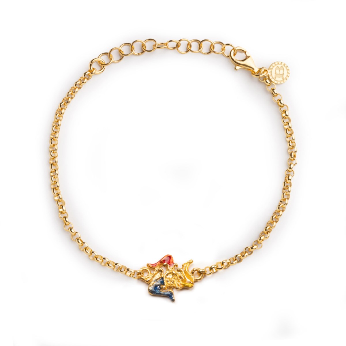Bracciale donna isola bella, 20001296, collezione bracciale, in argento 925 placcato oro e smalti La trinacria, simbolo d’eccellenza della Sicilia la cui origine è da ricercare nella storia della Grecia antica.