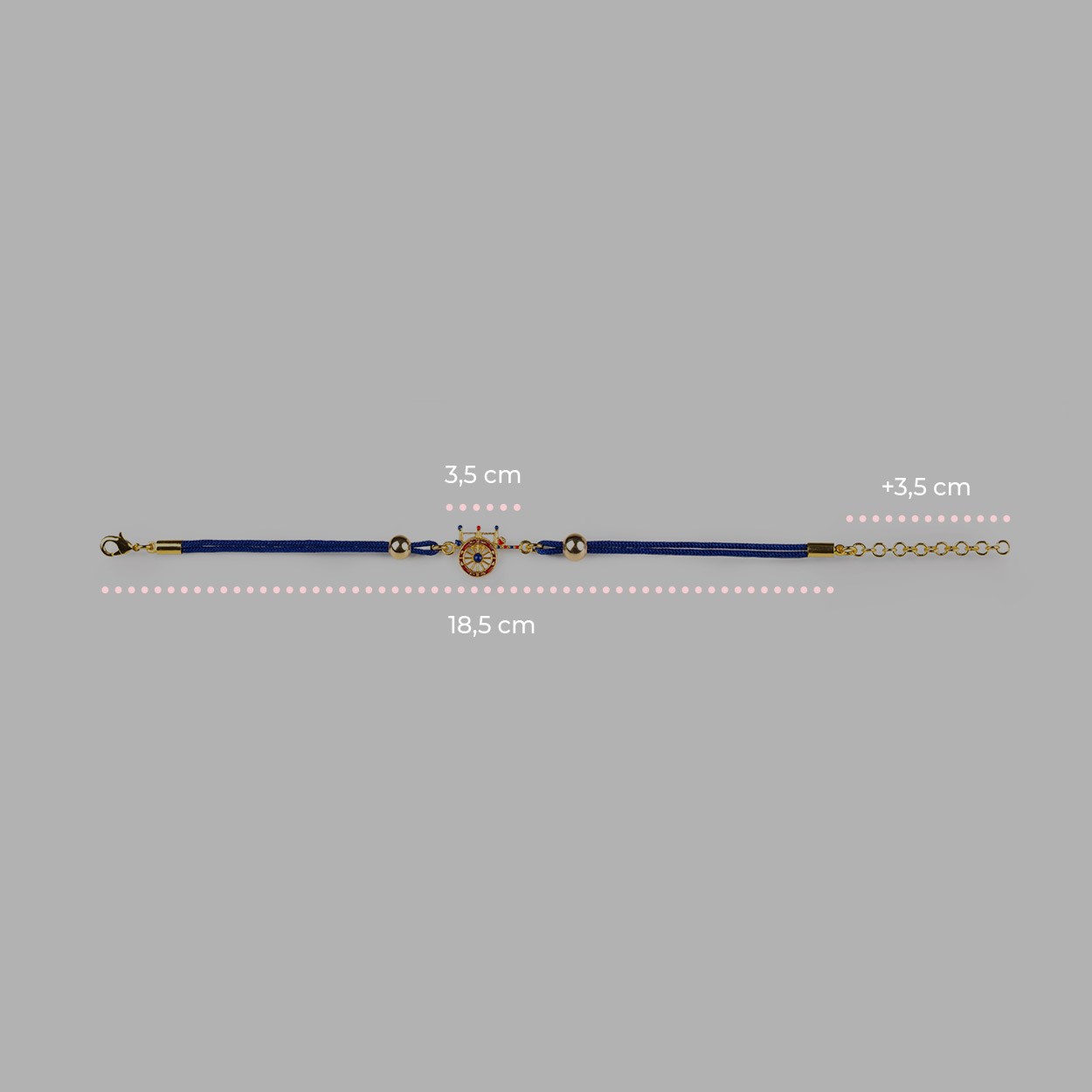 Bracciale donna isola bella, 60000031, collezione carretto, con finitura oro 18kt in lega IBG e smalti, con cordino in tessuto. Lunghezza 22 cm.