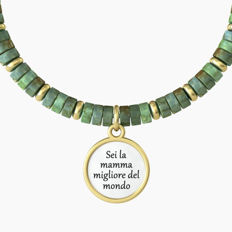 Bracciale donna kidult, 732034, collezione family, in acciaio/acciaio dorato con cristalli e scritta smaltata: "Sei la mamma migliore del mondo", lunghezza 17cm