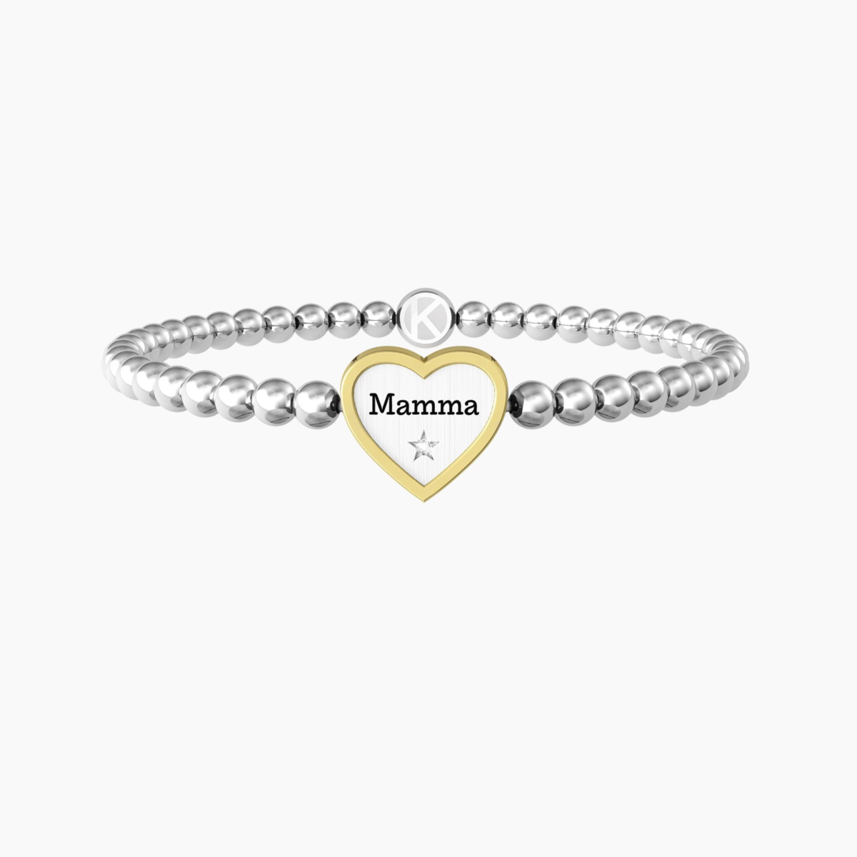 Bracciale uomo kidult, 732211, collezione family, in acciaio con cristallo bianco e scritta "Mamma". • Dimensioni del ciondolo: 13, 5 x 12 mm • Diametro cristallo: 1, 75 mm • Diametro delle sfere: 4 mm • Misura unica, circonferenza 18 cm