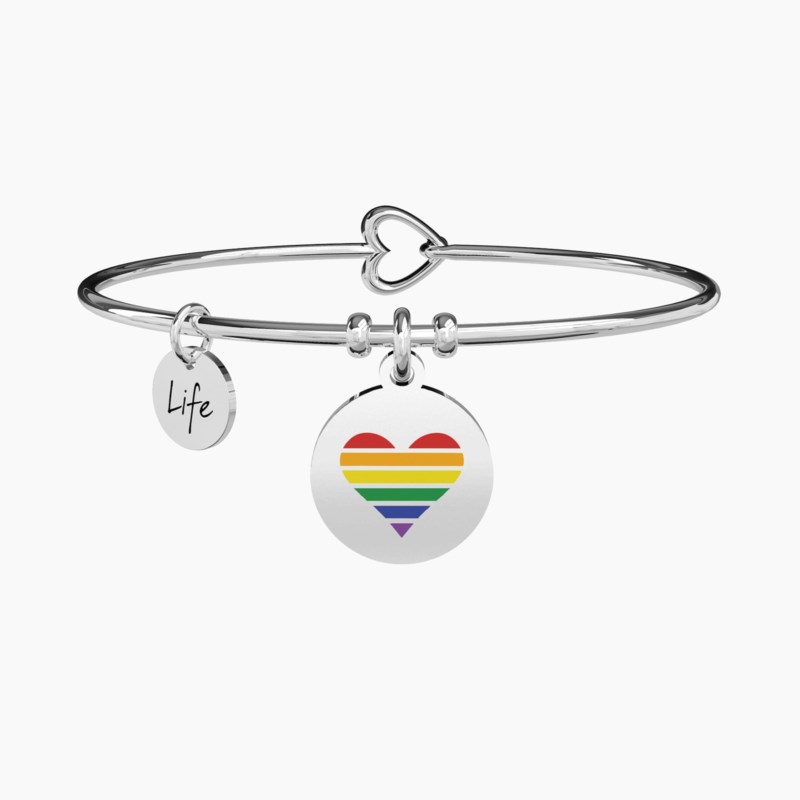 Bracciale donna kidult, 731708, collezione love, in acciaio, pendente con cuore smaltato arcobaleno