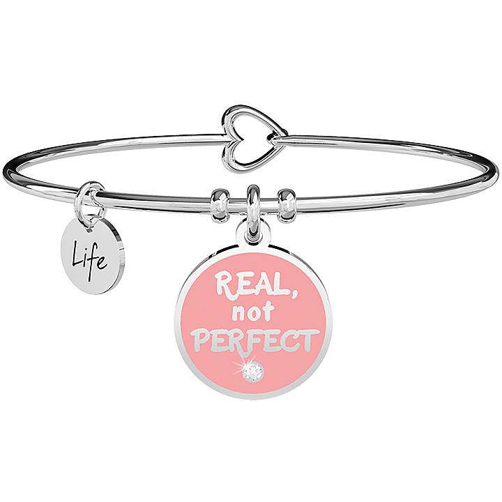 Bracciale donna kidult, 731721, collezione love, in acciaio, pendente smaltato rosa con scritta:'real, not perfect'