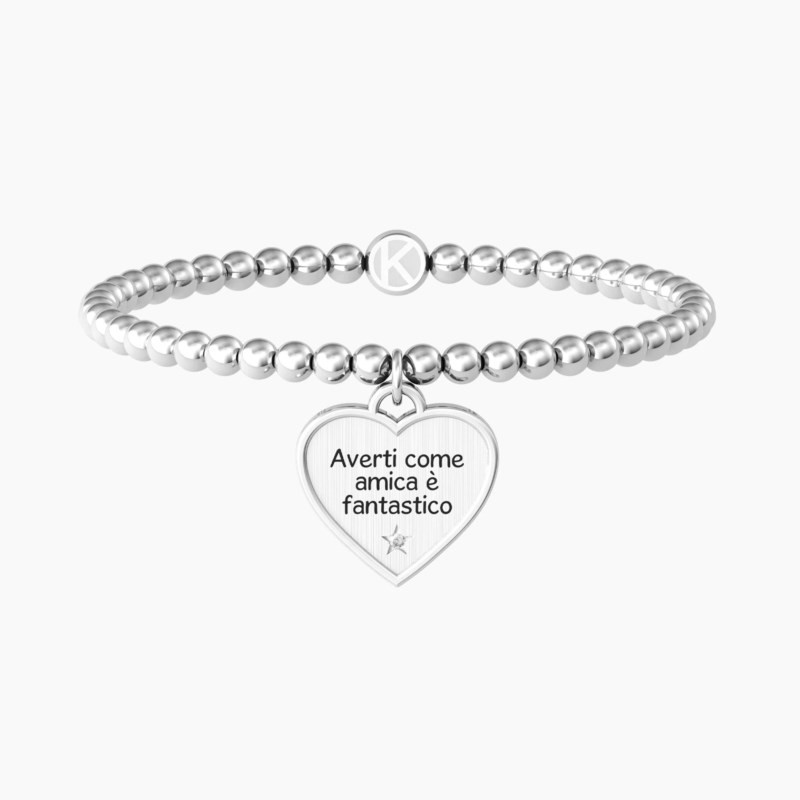 Bracciale donna kidult, 731945, collezione love, in acciaio, ciondolo a forma di cuore con cristallo e scritta: 'averti come amica è fantastico, esserlo è meraviglioso', lunghezza 17cm