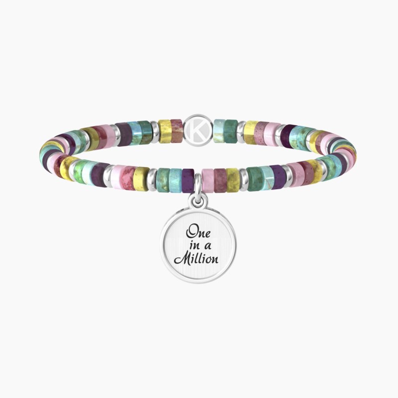 Bracciale donna kidult, 732021, collezione love, in acciaio con pietre, cristallo e scritta smaltata: "One in a million", lunghezza 17cm