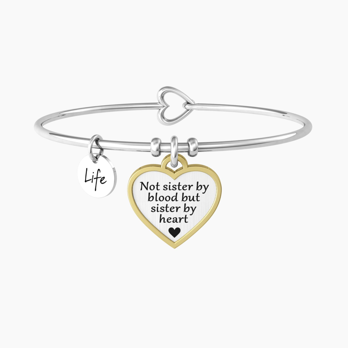 Bracciale donna kidult, 732137, collezione love, in acciaio/acciaio dorato con cristallo e frase "Not sister by blood but sister by heart", diametro 20cm