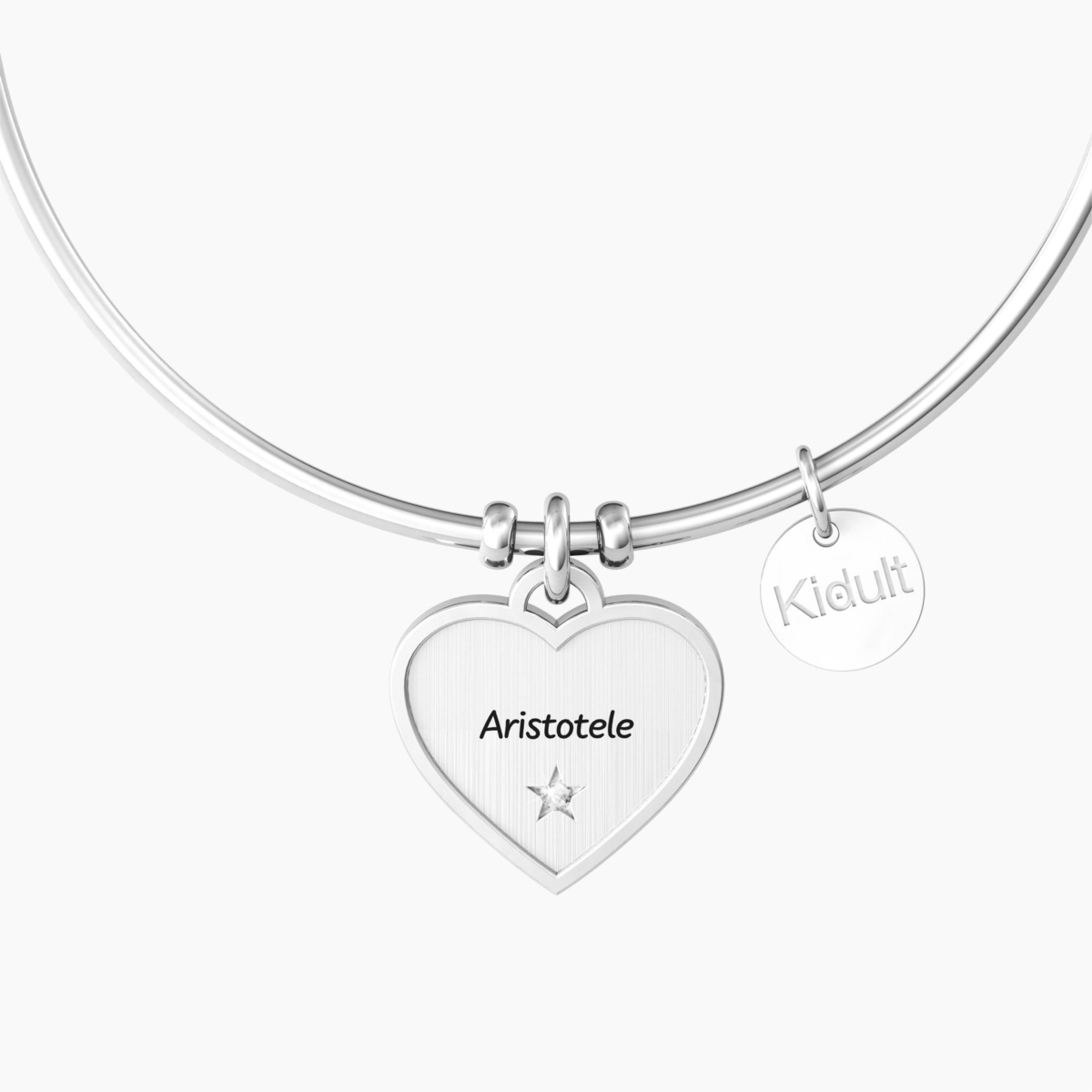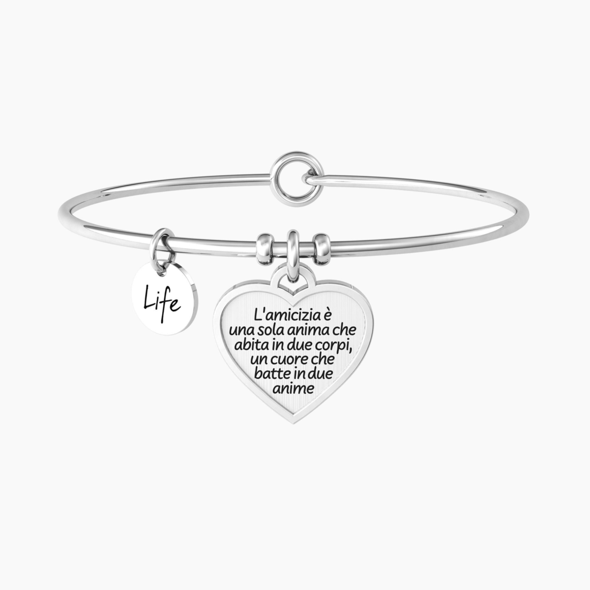 Bracciale donna kidult, 732155, collezione love, in acciaio con cristallo e scritta "L'amicizia è una sola anima che abita in due corpi, un cuore che batte in due anime", diametro 20cm