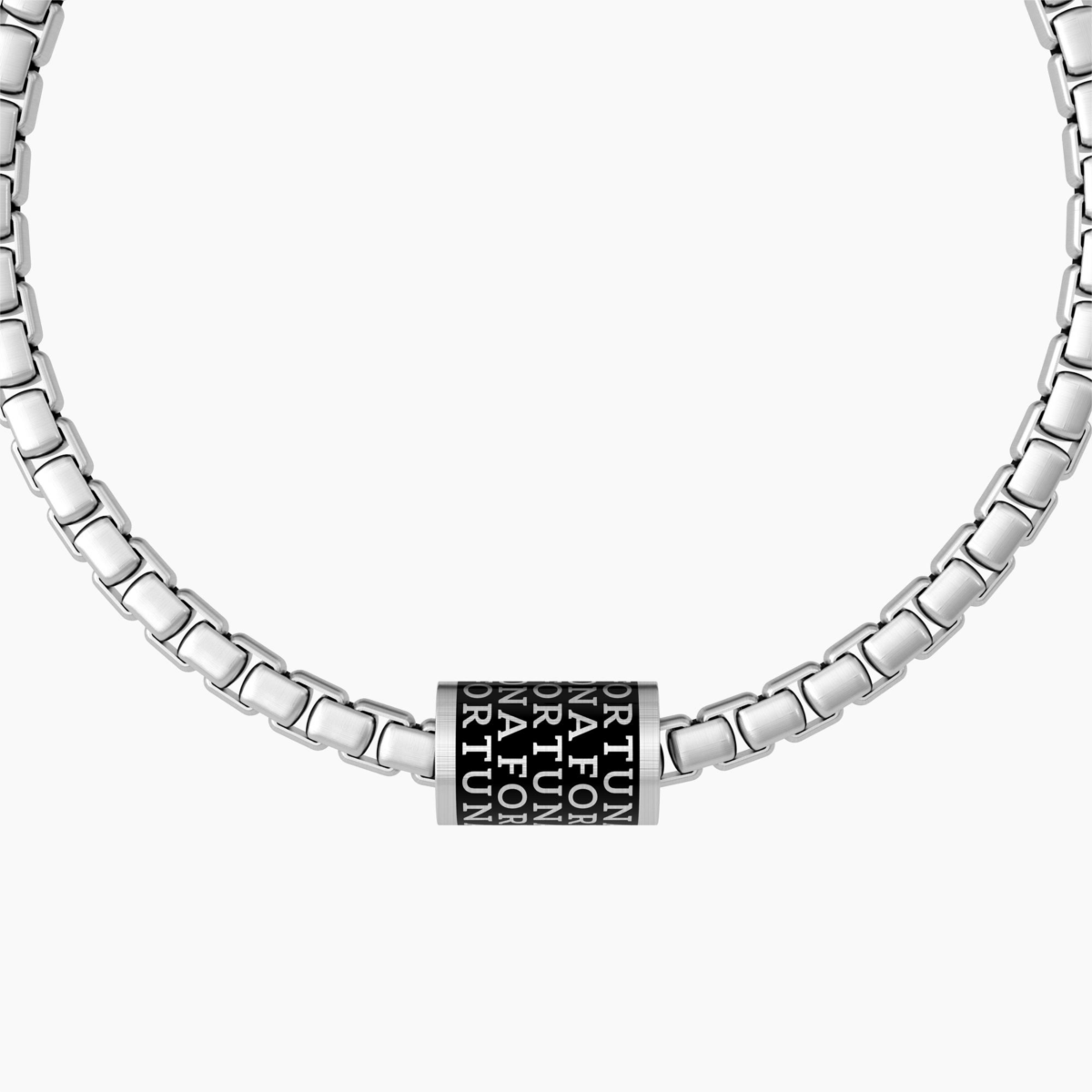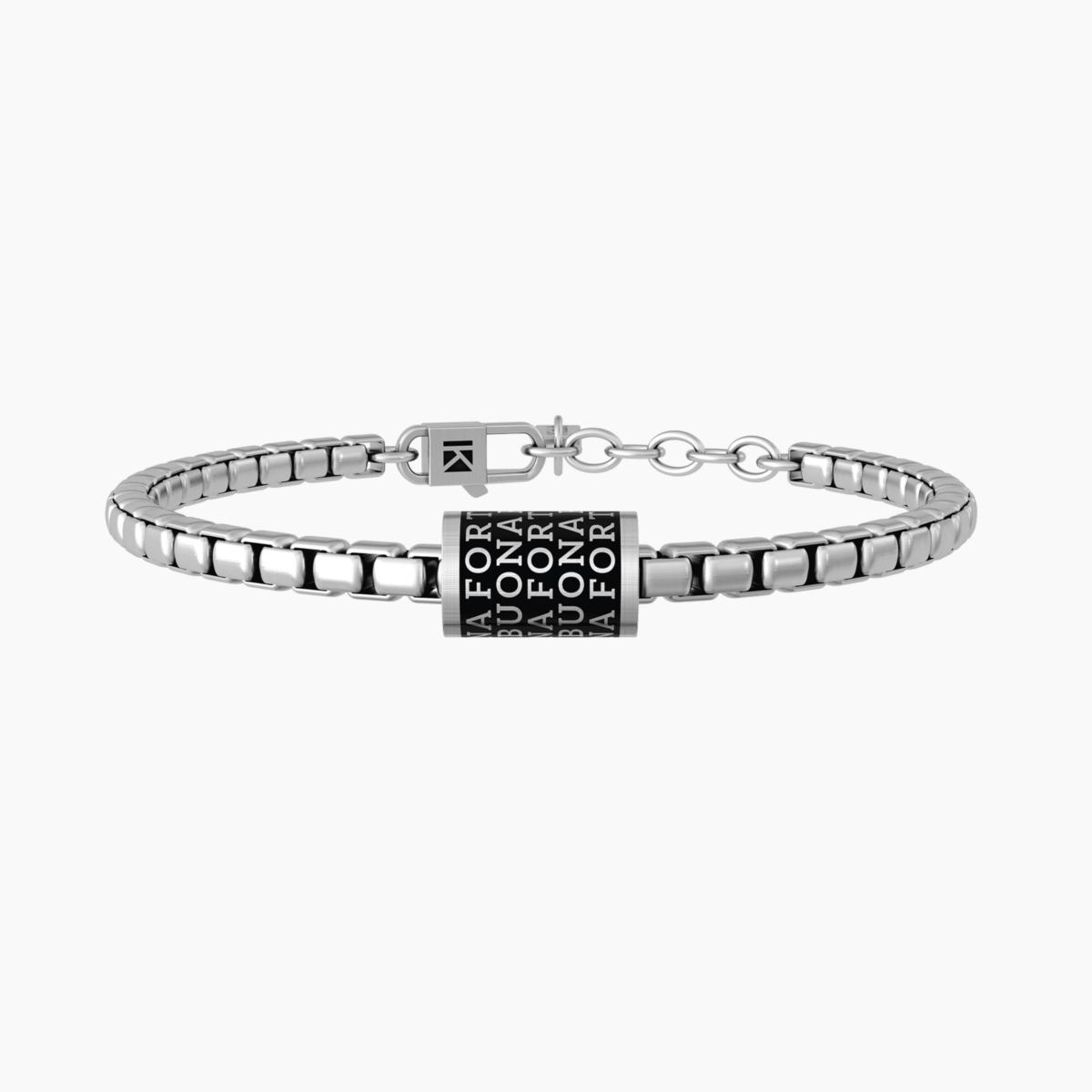 Bracciale uomo kidult, 732169, collezione nature, in acciaio e scritta "Buona fortuna", lunghezza regolabile da 19cm a 21cm
