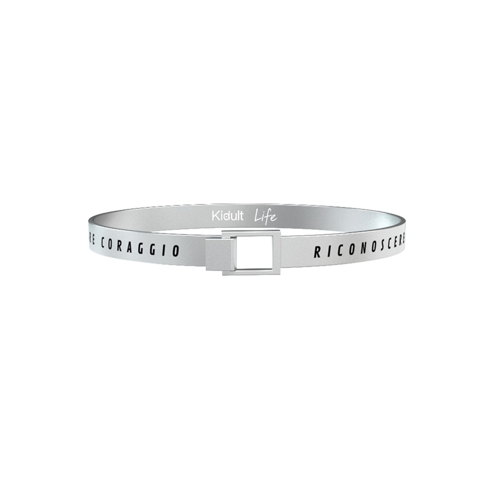 Bracciale uomo kidult, 731198, collezione philosophy, novità; in acciaio, segni: Riconoscere di avere paura è il primo passo per trovare coraggio