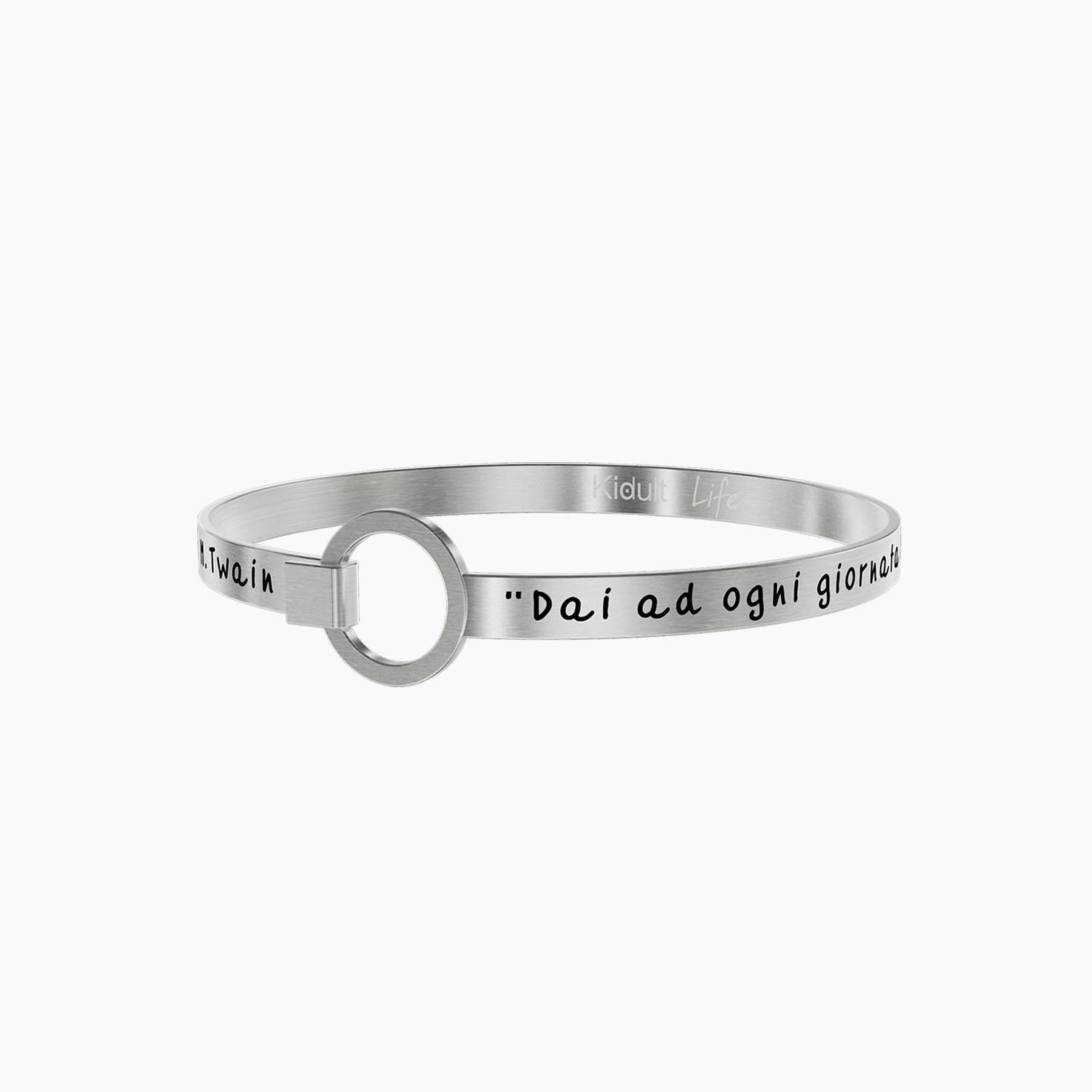 Bracciale unisex kidult, 731503, collezione philosophy, in acciaio satinato con scritta "Dai ad ogni giornata la possibilità di essere la più bella della tua vita." • Incisione smaltata • Chiusura tonda • Misura unica, diametro 6 cm • Materiale: Acciaio 316L