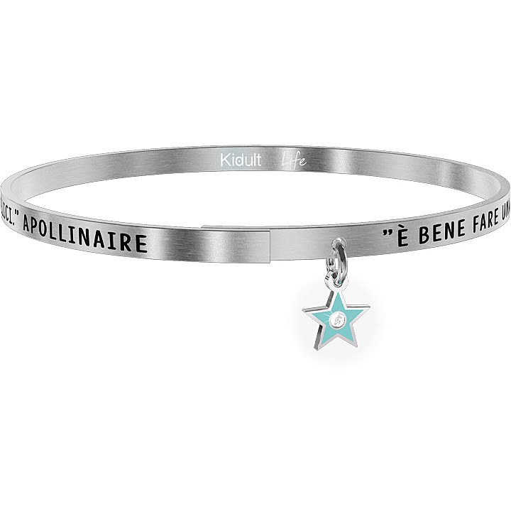 Bracciale donna kidult, 731880, collezione philosophy, in acciaio con scritta smaltata nera, pendente stella smaltato con cristallo