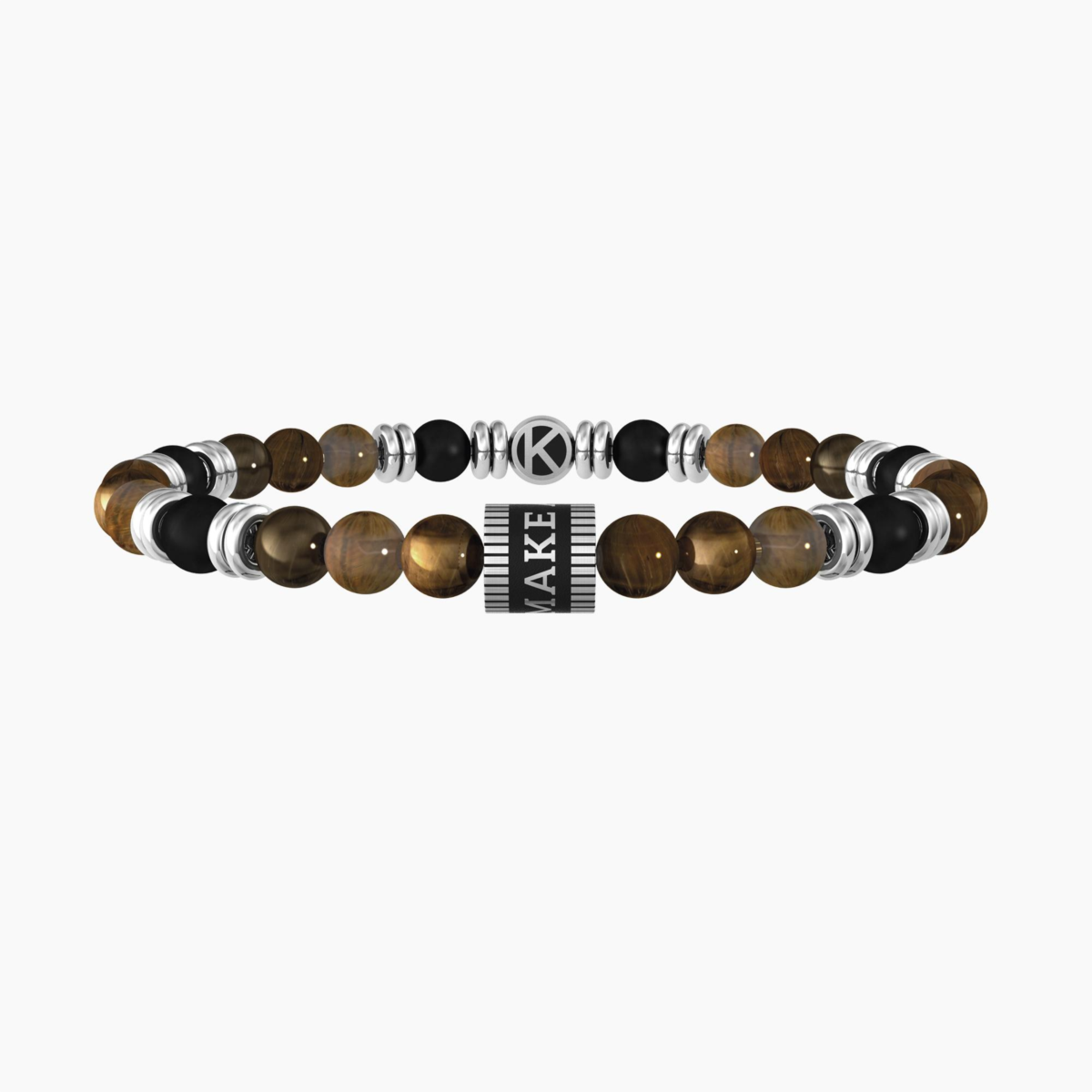 Bracciale uomo kidult, 732172, collezione philosophy, in acciaio con pietre e scritta "Make a wish" • Misura unica, lunghezza 19.50 - 19.80 cm • Diametro delle sfere: 6 mm • Dimensioni dello charm: 7.5x7.5 mm