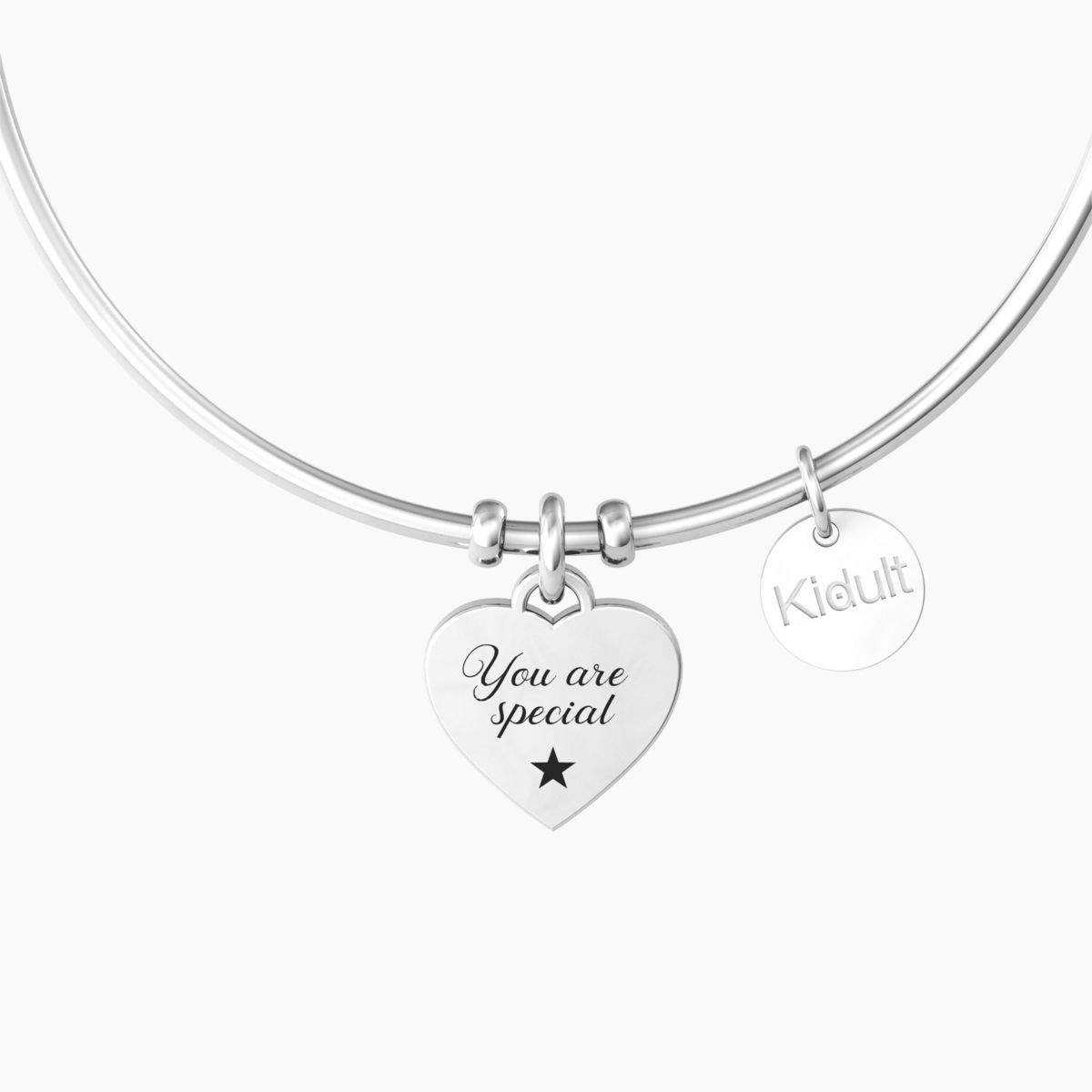 Bracciale donna kidult, 732222, collezione philosophy, in acciaio con cristallo bianco e scritta "You are unique, you are special" • Dimensione del ciondolo: 15 x 16 mm • Diametro del cristallo: 1.25 mm • Misura unica, circonferenza 20 cm
