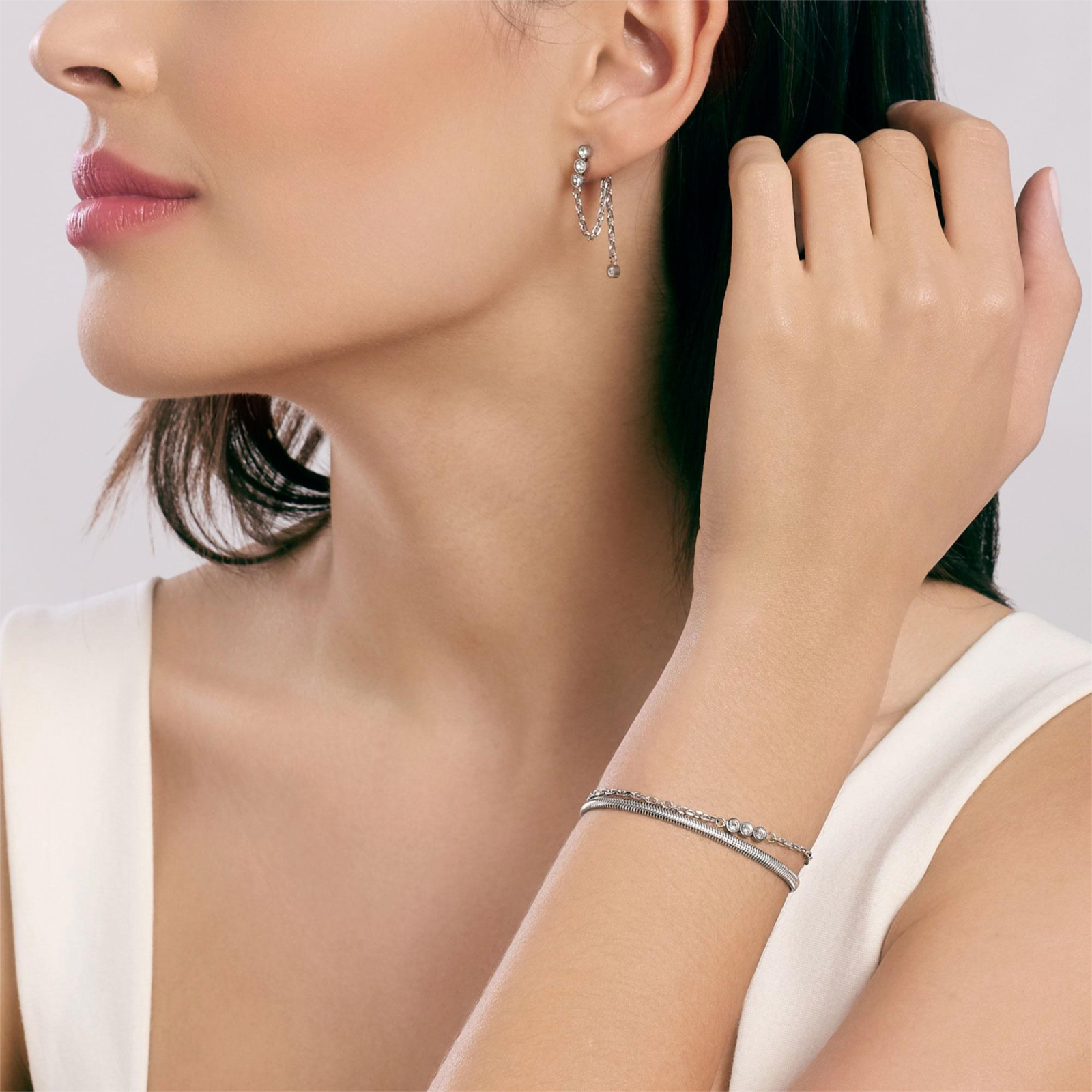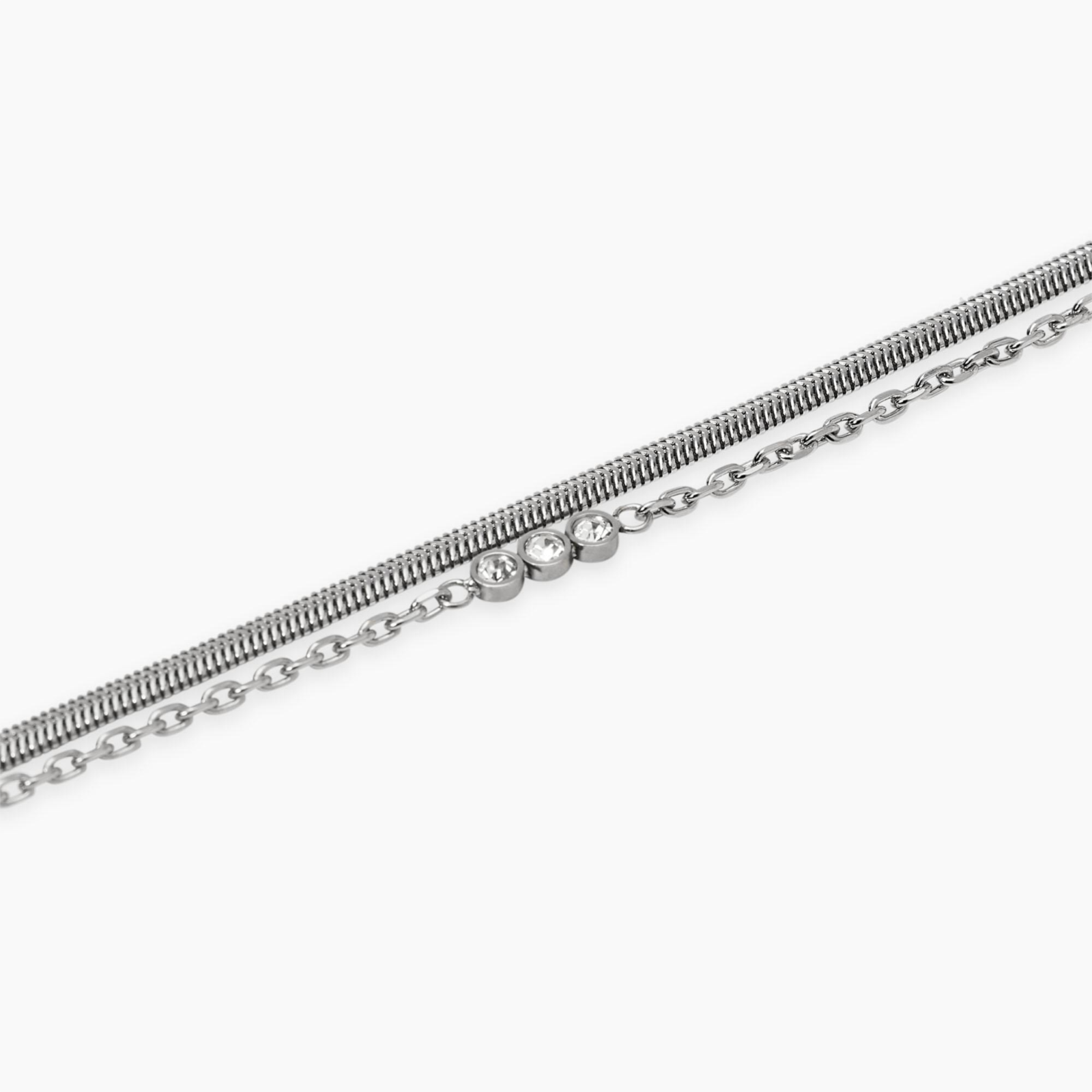 Bracciale donna kidult, 831066, collezione style, con catene snake e forzatina diamantata in acciaio con cristalli. • Dimensione catena forzatina: 2 mm • Dimensione catena snake: 3 mm • Diametro cristalli: 2, 5 mm • Misura regolabile, lunghezza da 16 a 19 cm