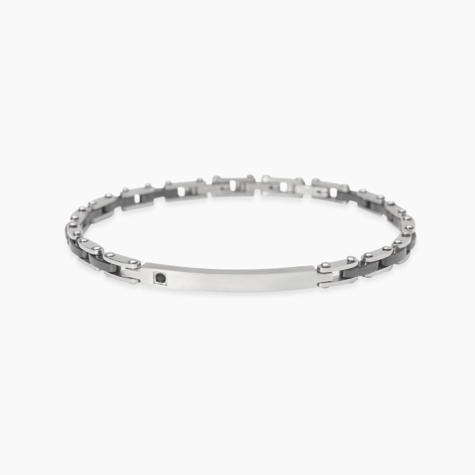 Bracciale uomo kidult, 831097, collezione style, in acciaio con elementi imperniati in ceramica nera e piastra centrale con cristallo nero. • Dimensione elementi imperniati: 9, 9x2, 1 mm • Dimensione piastra: 46, 5x4 mm • Diametro cristallo: 2 mm • Misura regolabile, lunghezza da 19 a 21 cm