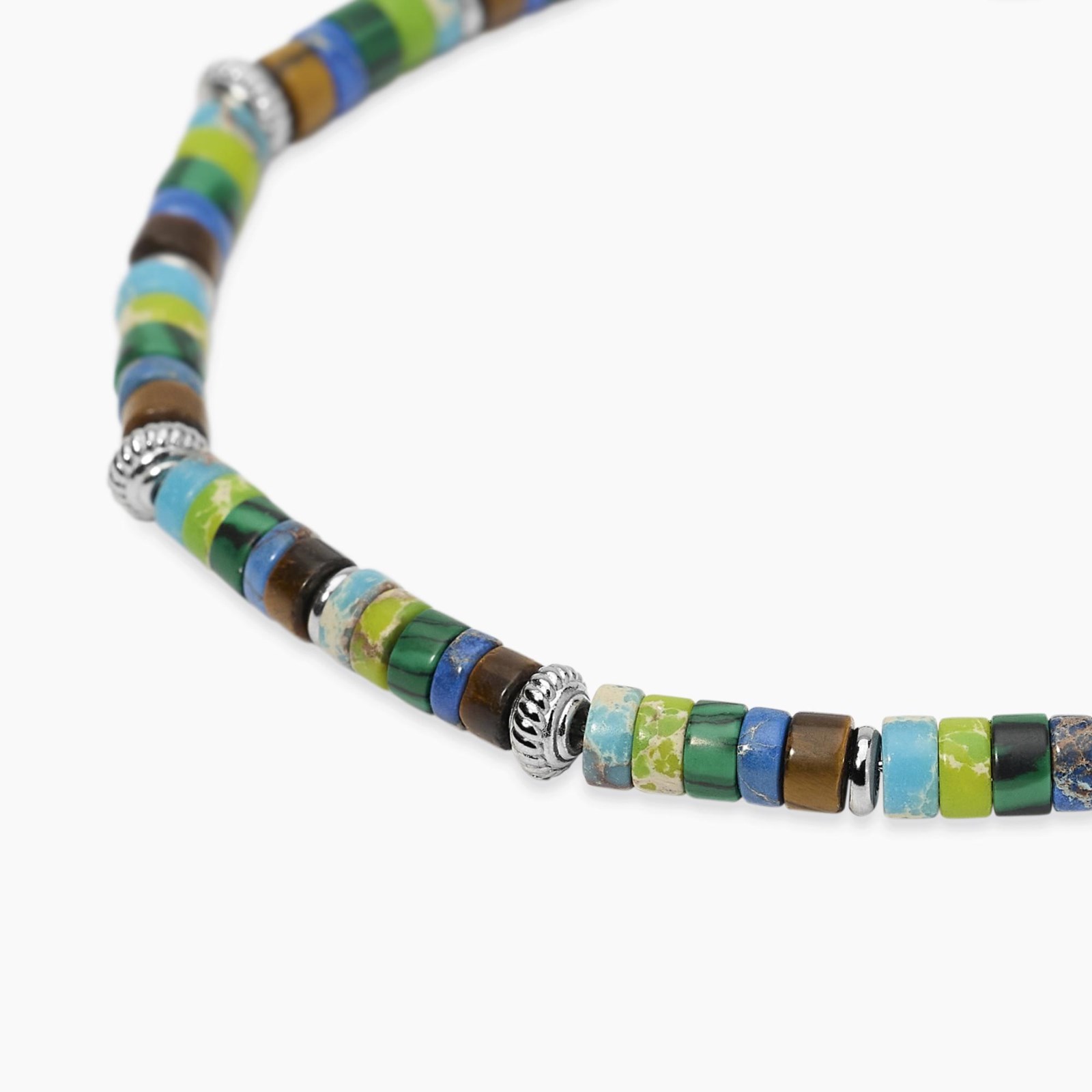 Bracciale uomo kidult, 831183, collezione style, in acciaio con dischetti in diaspro multicolor e occhio di tigre.