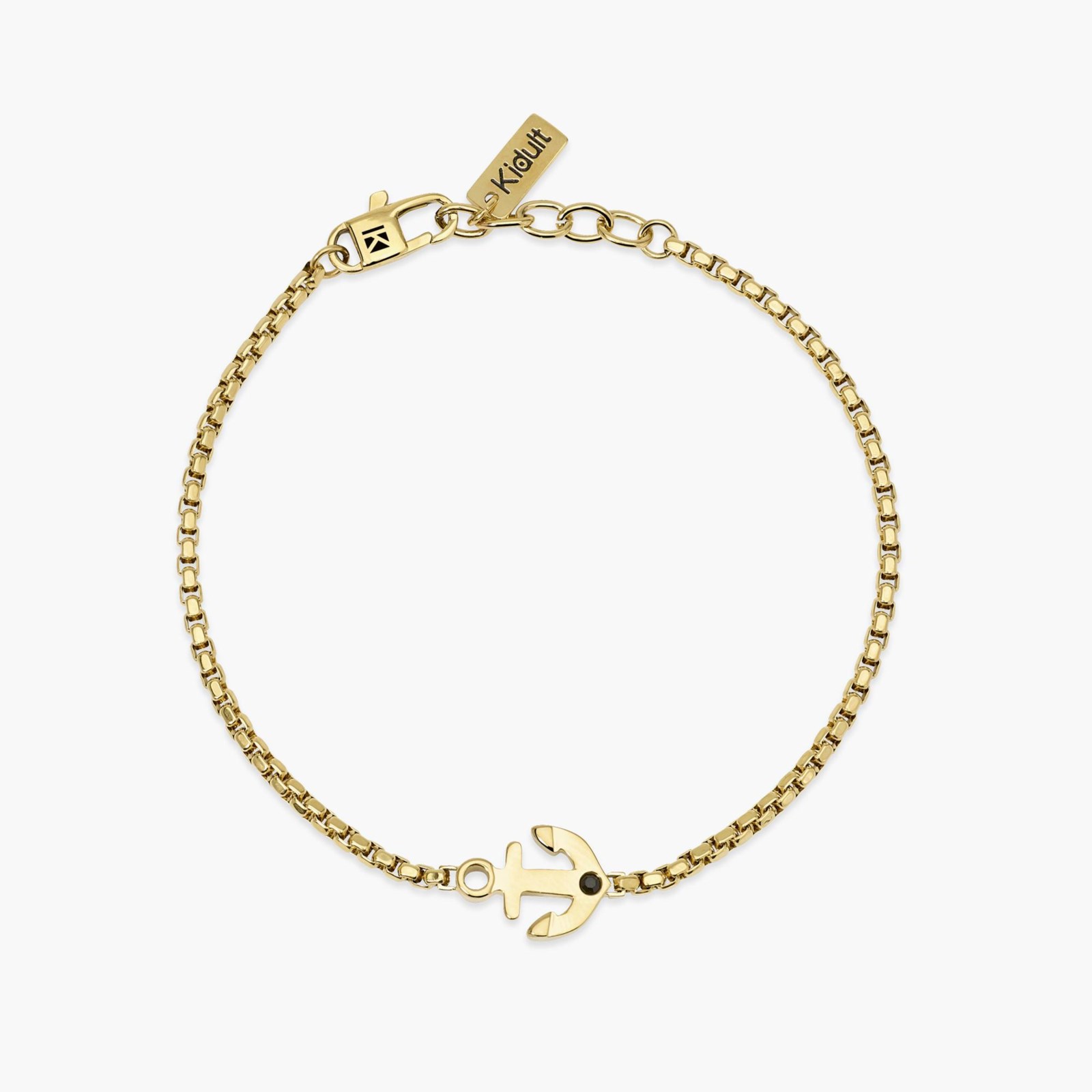 Bracciale uomo kidult, 831204, collezione style, in acciaio dorato con simbolo ancora con cristallo nero.