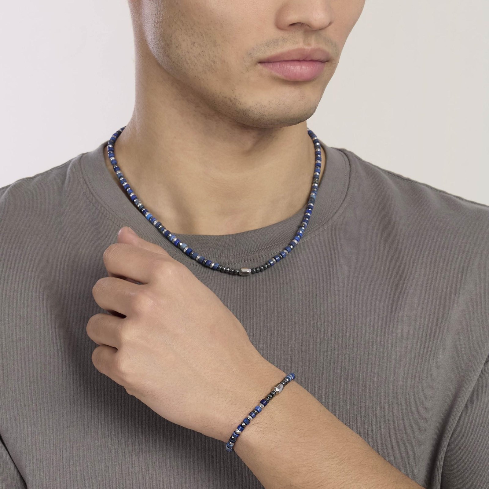 Bracciale uomo kidult, 831210, collezione style, in acciaio, ematite faccettata e cilindri in lapis.