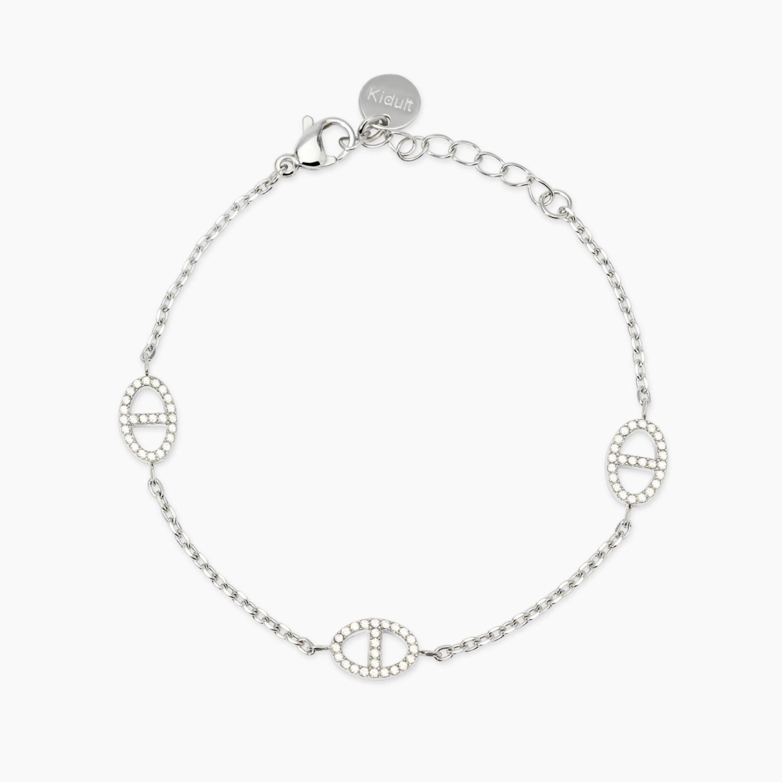 Bracciale donna kidult, 831241, collezione style, in acciaio con catena forzatina diamantata ed elementi staffa con cristalli.