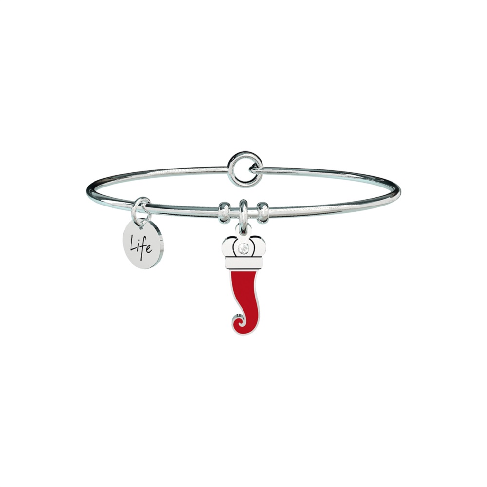 Bracciale donna kidult, 731623, collezione symbols, in acciaio con pendente cornetto smaltato; E' l'arma per vincere ogni tua sfida, ti protegge dai guai che riserva la vita.