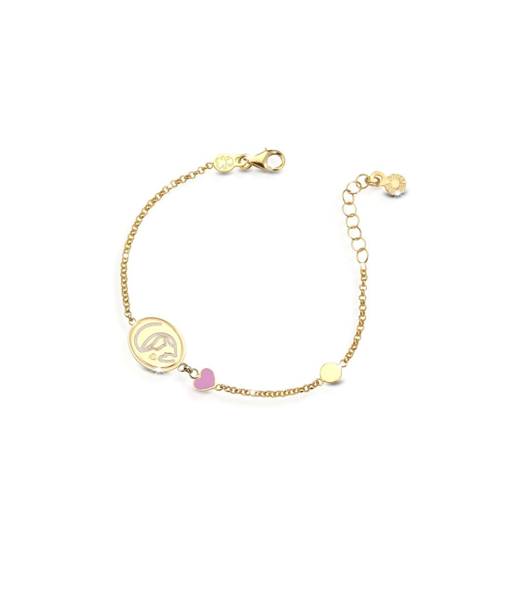 Bracciale donna le bebe, PMG085, collezione prime gioie, in oro giallo con Madonnina e cuore smaltati