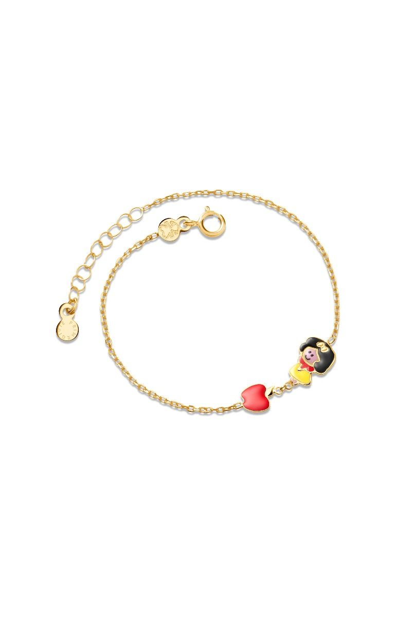 Bracciale donna le bebe, PMG092, collezione prime gioie, in oro giallo con elemento ispirato a Biancaneve e mela con smalto colorato