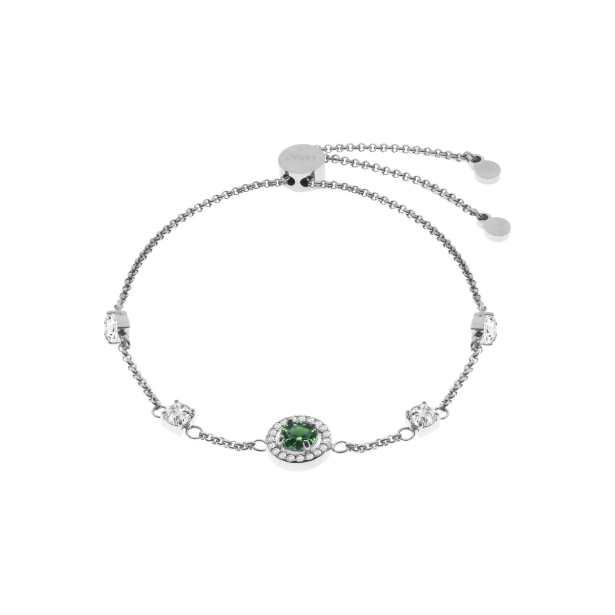 Bracciale donna liu jo, LJ2273, collezione essential, in acciaio con zirconi bianchi e verdi. lunghezza massima di 24 cm.