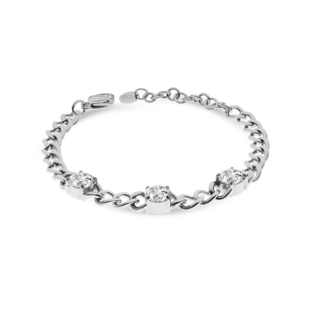 Bracciale donna liu jo, LJ2304, collezione essential, in acciaio con catena a grumetta e zirconi bianchi. dimensione zirconi 8mm. lunghezza 20cm.