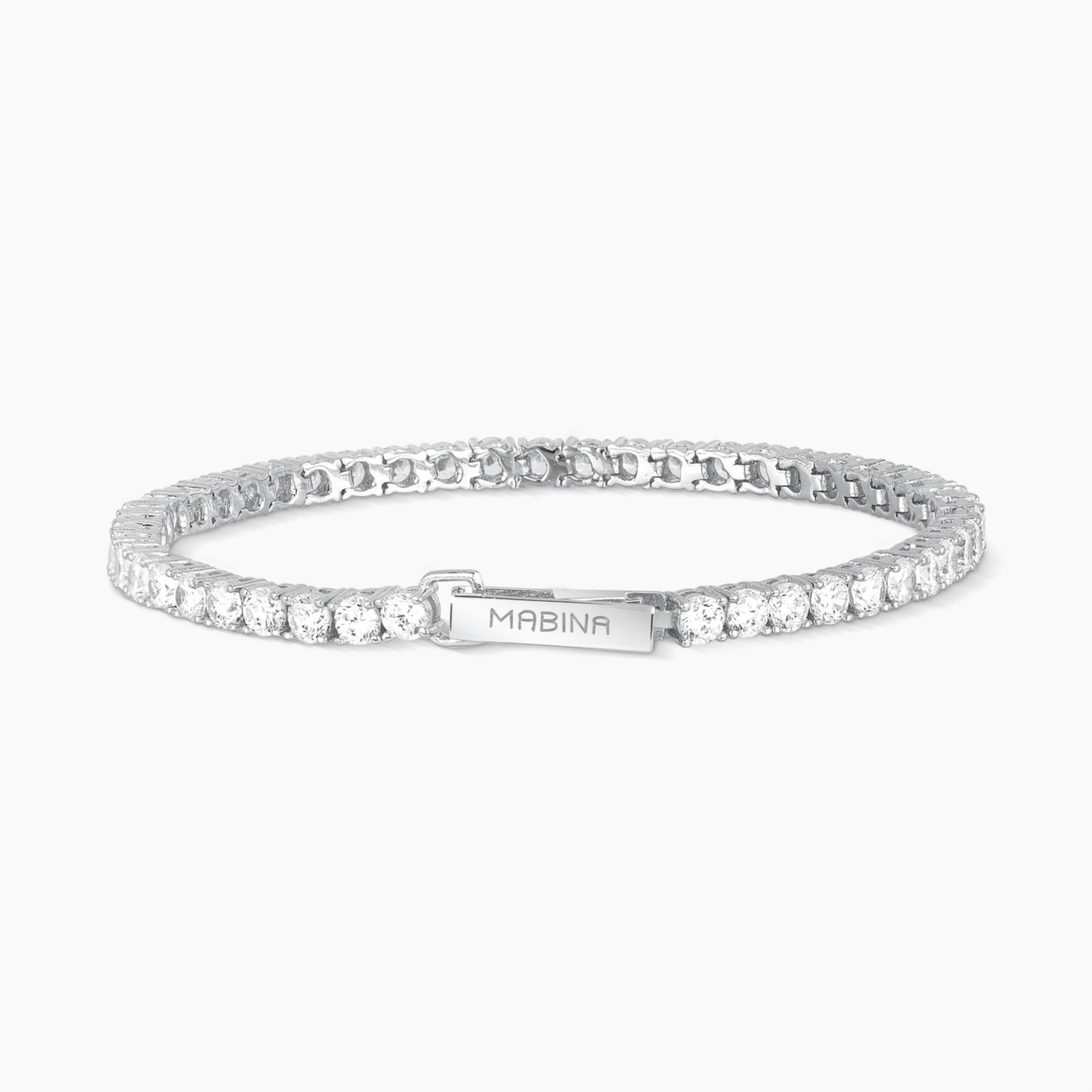 Bracciale donna mabina, 533020/M, collezione argento donna, tennis in argento con zirconi. • Incastonatura degli zirconi a griffe • Diametro degli zirconi: 3, 5 mm • Chiusura a pinza con molla • Misura medium, lunghezza 18 cm