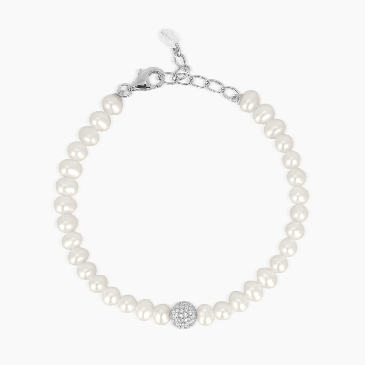 Bracciale donna mabina, 533297, collezione argento donna, in argento 925 con perle coltivate e zirconi, lunghezza regolabile da 16cm a 19cm