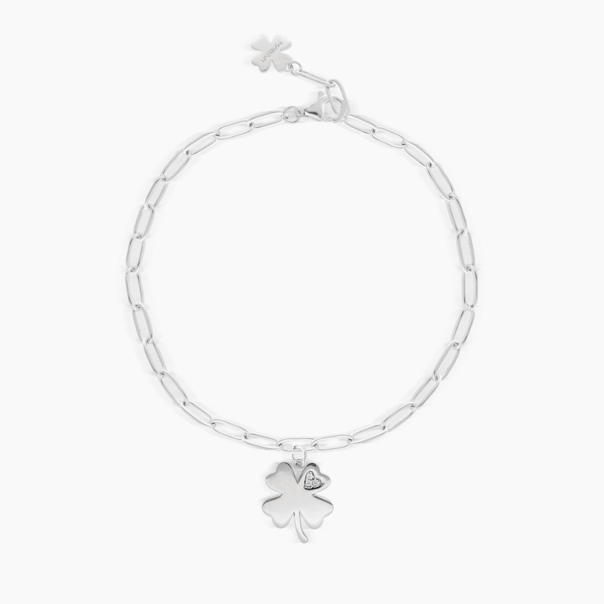 Bracciale donna mabina, 533403, collezione argento donna, in argento 925, pendente quadrifoglio con zirconi, lunghezza fino a 19cm