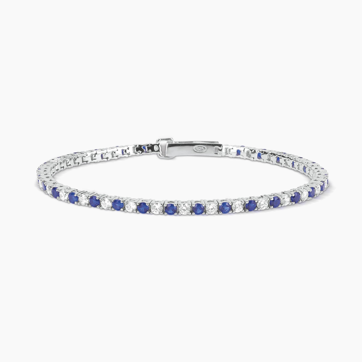 Bracciale donna mabina, 533456-m, collezione argento donna, in argento 925 con zirconi bianchi e blu, lunghezza 18cm
