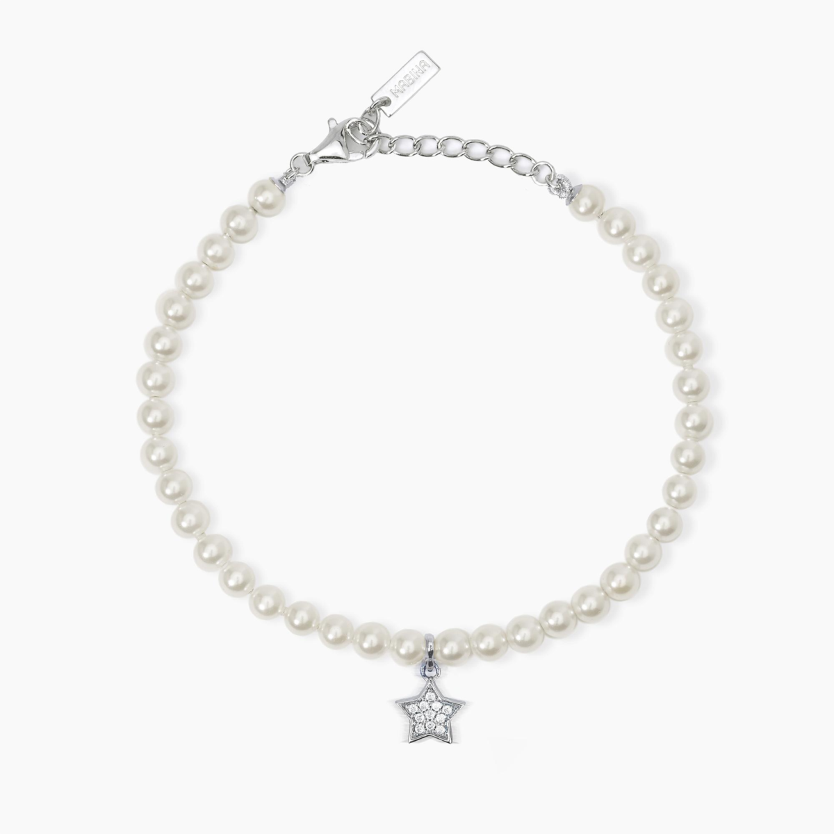 Bracciale donna mabina, 533736, collezione argento donna, in argento 925 con perle e ciondolo a forma di stella con zirconi