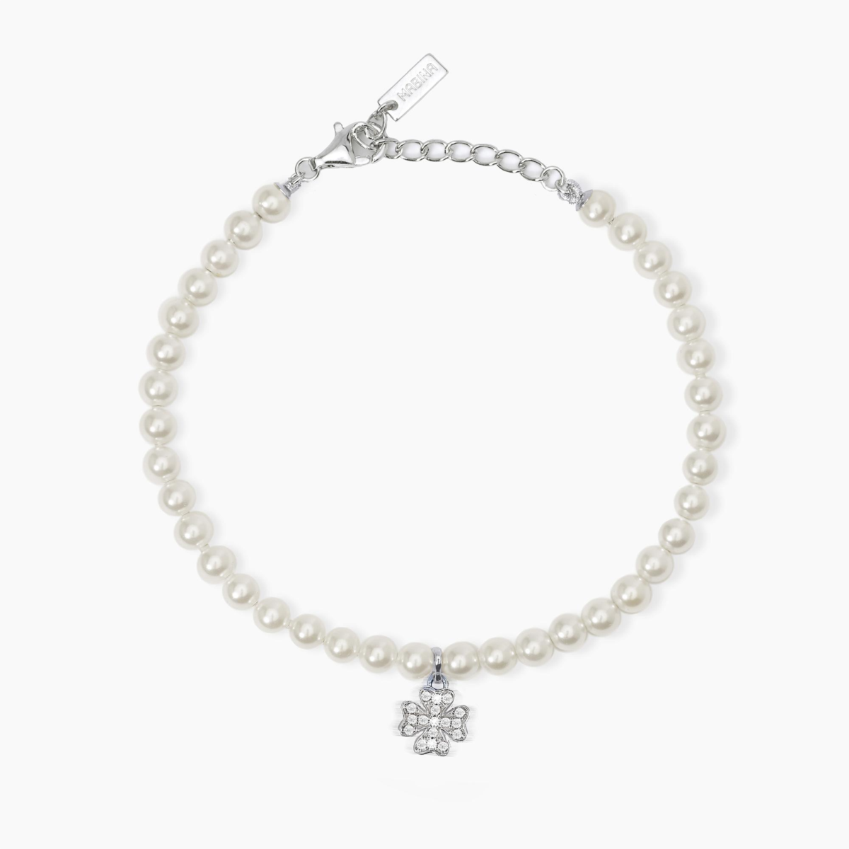 Bracciale donna mabina, 533738, collezione argento donna, in argento 925 con perle e ciondolo a forma di quadrifoglio zirconato.