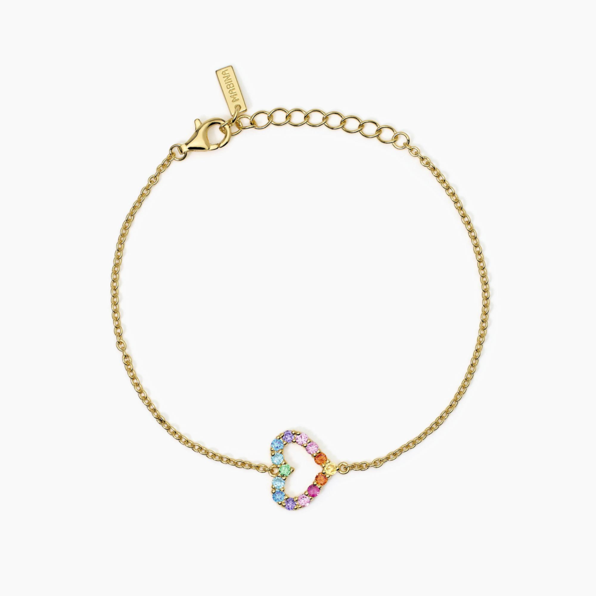 Bracciale donna mabina, 533836, collezione argento donna, in argento placcato oro giallo 18k, cuore centrale con zirconi colorati