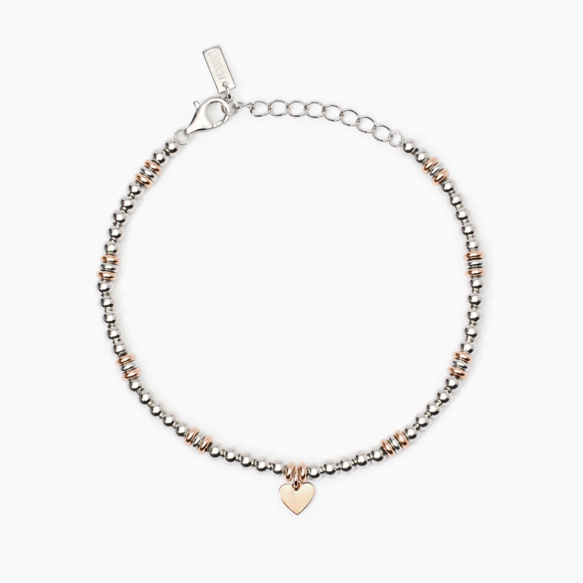 Bracciale donna mabina, 533839, collezione argento donna, in argento rodiato e placcato oro rosa 18K con ciondolo centrale a forma di cuore.