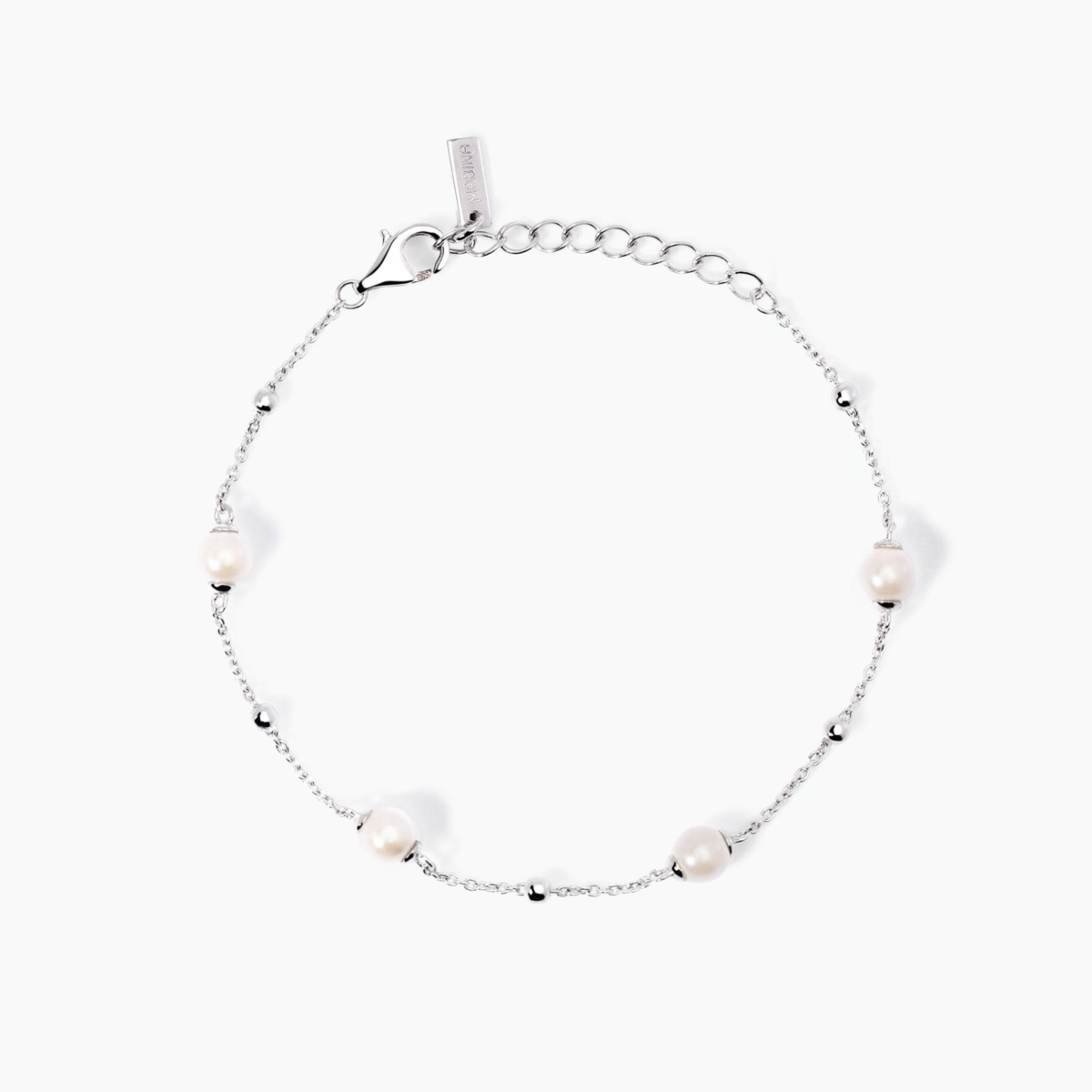 Bracciale donna mabina, 533938, collezione argento donna, in argento rodiato con catena rolò, sfere e perle conchiglia. • Incastonatura sfere a castone • Diametro delle sfere e delle perle: 2, 5 - 5 mm • Chiusura con moschettone • Misura regolabile, lunghezza da 16 a 19 cm