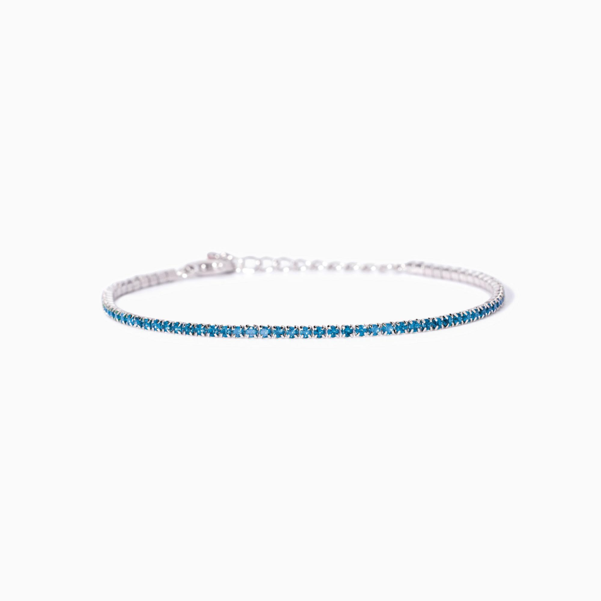 Bracciale donna mabina, 533960, collezione argento donna, in argento rodiato con acquemarine sintetiche. • Incastonatura degli zirconi a griffe • Diametro degli zirconi: 1, 75 mm • Chiusura con moschettone • Misura regolabile, lunghezza da 15, 5 a 18, 5 cm