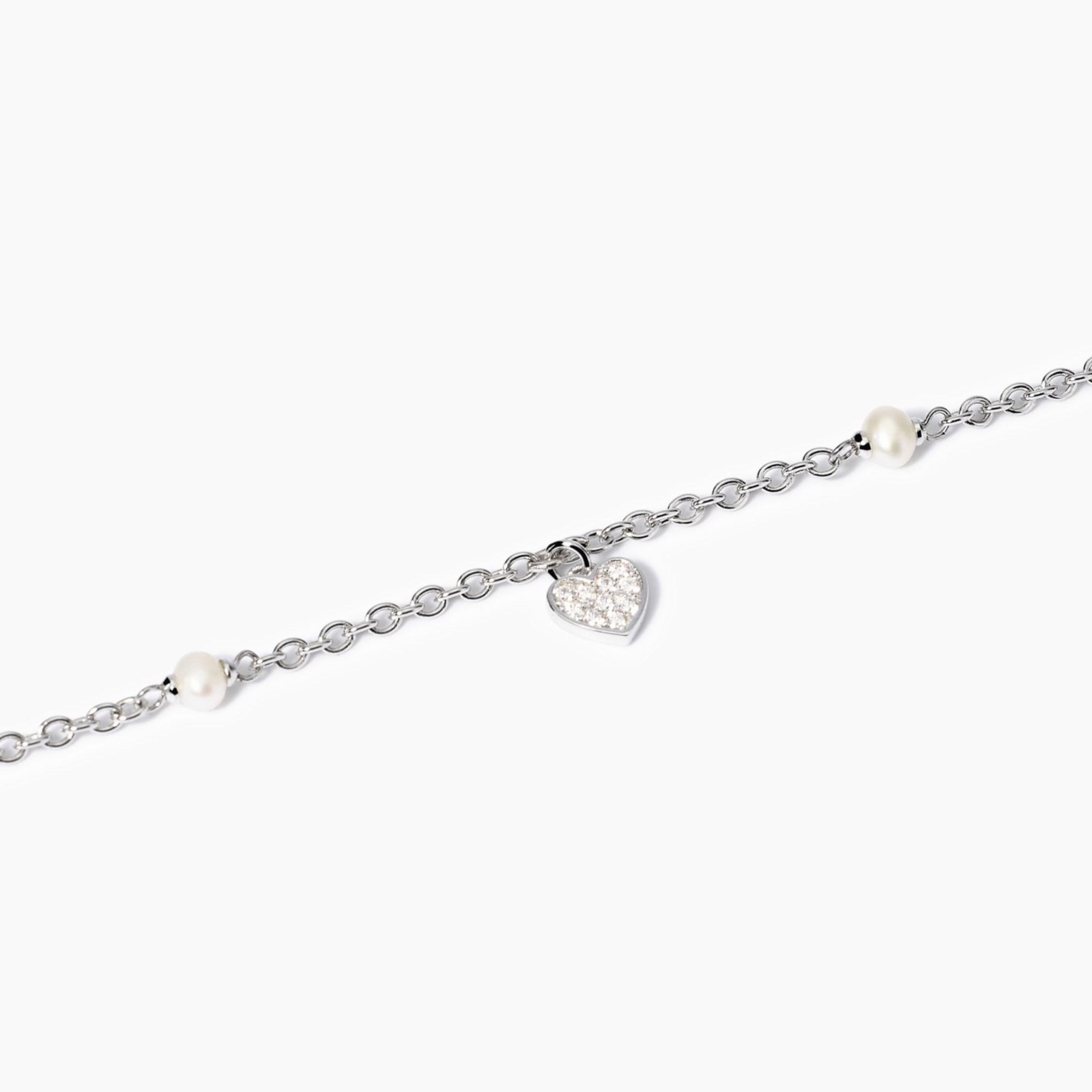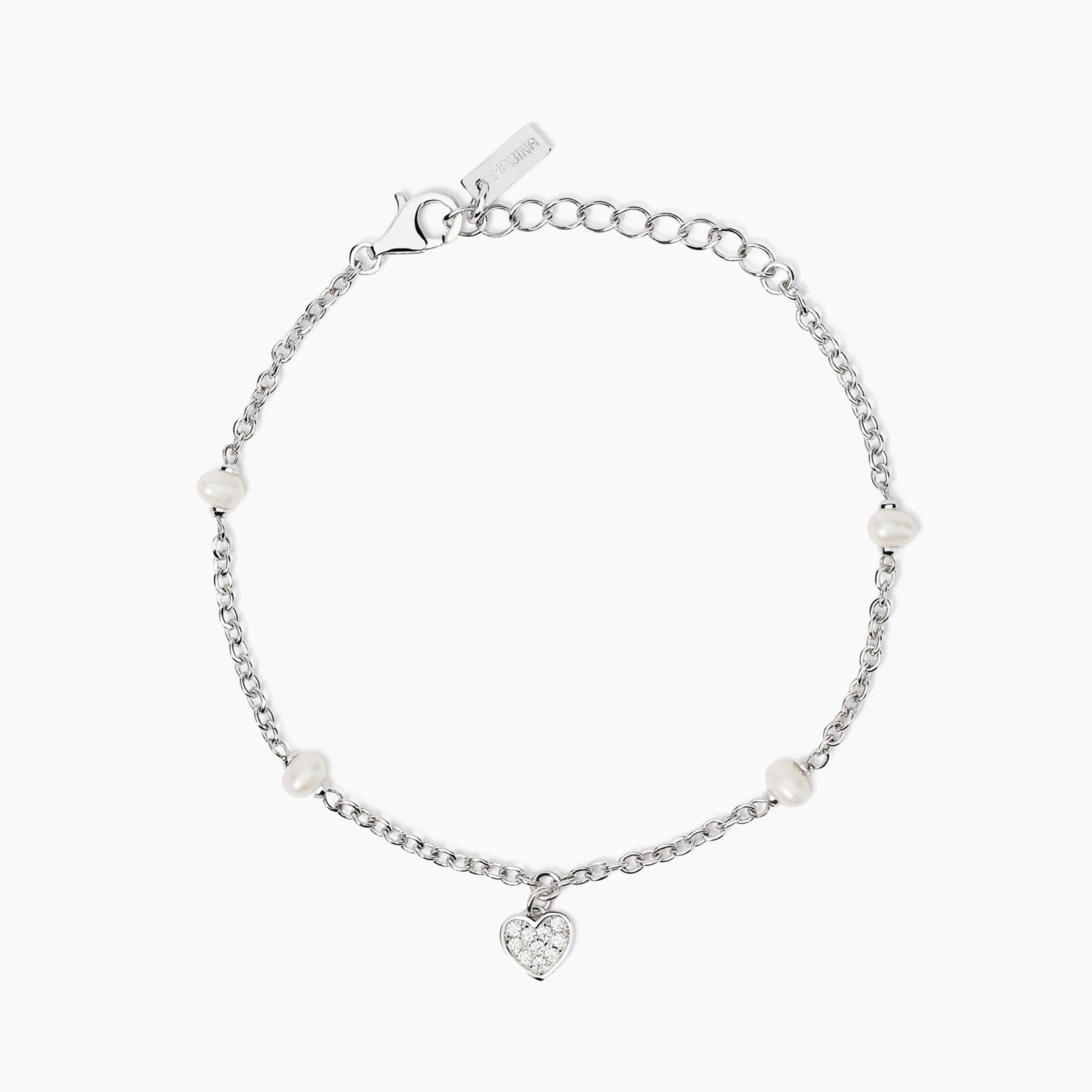 Bracciale donna mabina, 533998, collezione argento donna, in argento rodiato con catena rolò, perle coltivate e ciondolo in pavè di zirconi taglio di cuore. • Dimensione catena: 2 mm • Diametro perle coltivate : 3-3, 5 mm • Dimensione ciondolo taglio cuore: 6, 5x6 mm • Lunghezza regolabile da 16 a 19 cm