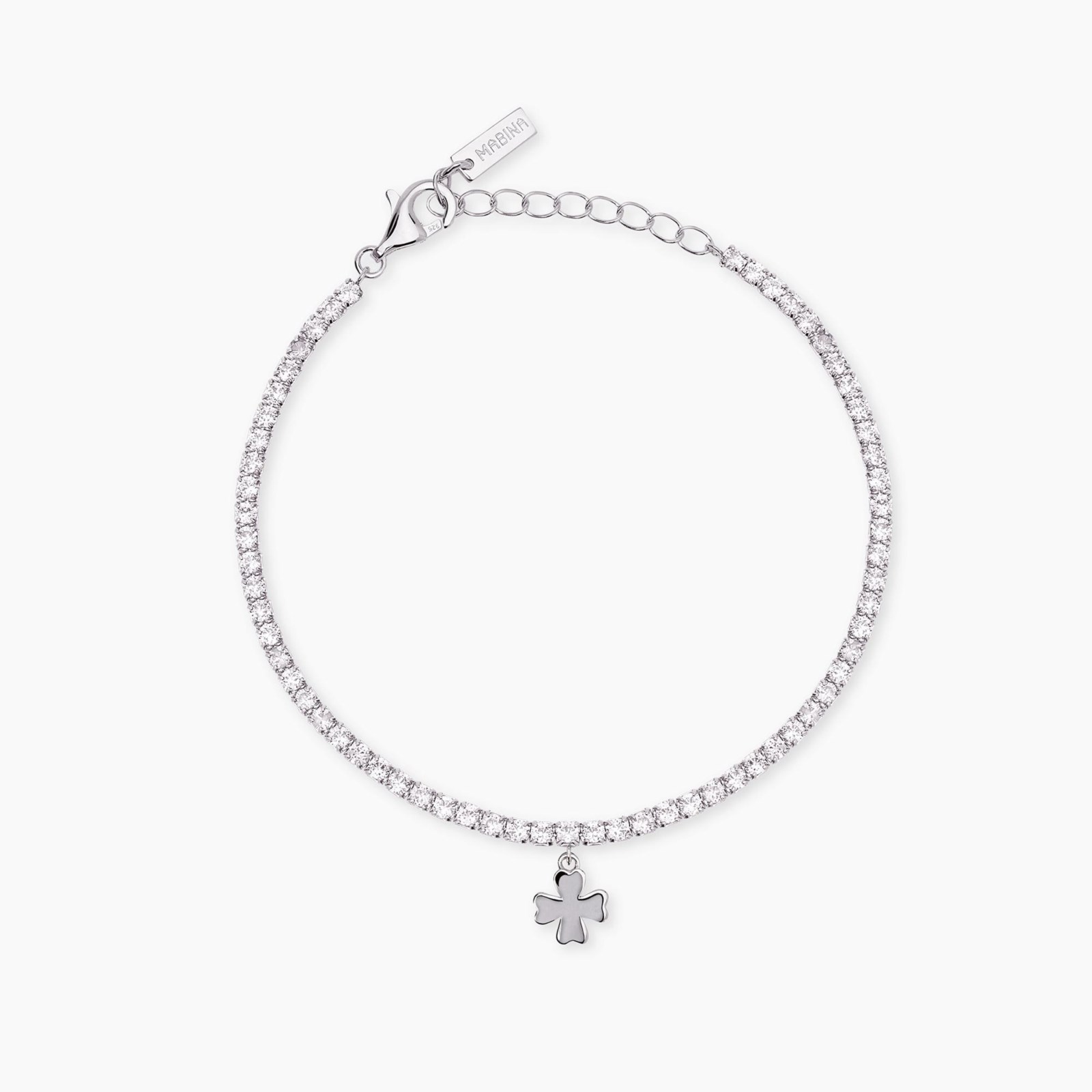 Bracciale donna mabina, 534160, collezione argento donna, in argento rodiato con zirconi bianchi e ciondolo quadrifoglio.